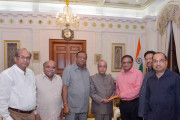 | Caption: | The President of India, Shri Pranab Mukherjee meeting with Shri Padam Chand Garg, Chairman with others from Nav Shri Dharmic Leela Committee, Lal Qila Maidan, at Rashtrapati Bhavan on September 08, 2016. |