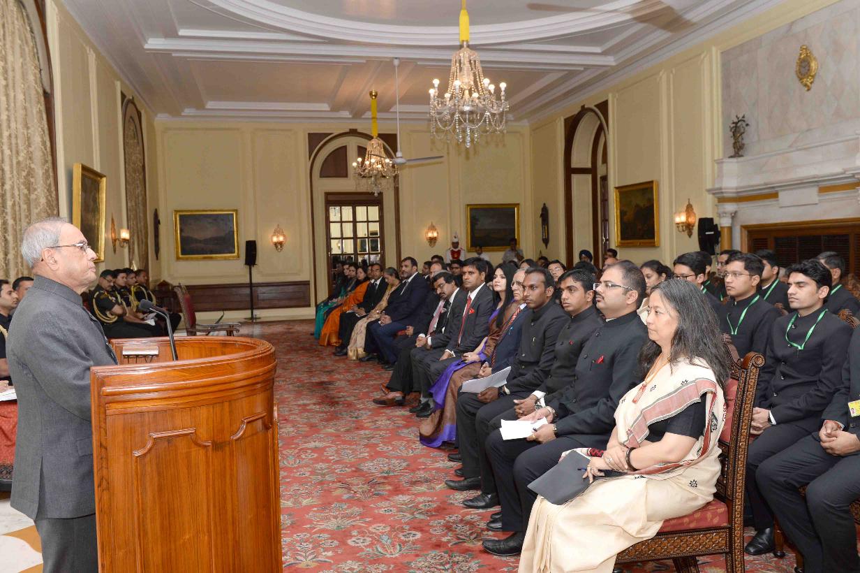| Caption: | The President of India, Shri Pranab Mukherjee interacting with the Officers Trainees Indian Information Service (2016 Batch), Probationers of Indian P&T Accounts and Finance Service (2015 Batch) and Probationers of Indian Trade Service (2015 Batch), at Rashtrapati Bhavan on September 06 2016. |