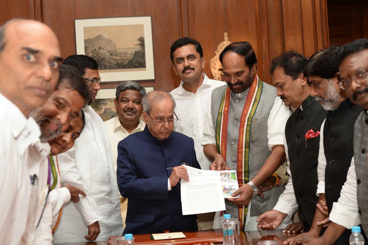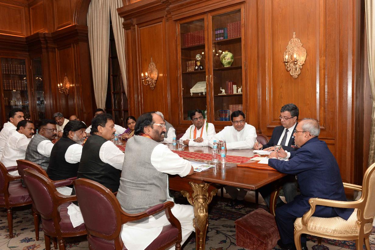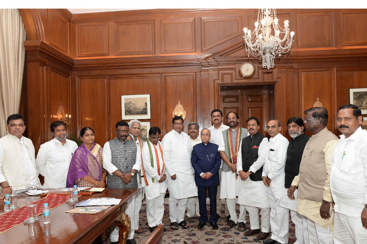 | Caption: | A delegation of Congress MPs, MLCs and former Central/State Ministers of Telangana led by Shri Palvai Govardhan Reddy, MP (RS) calling on the President of India, Shri Pranab Mukherjee, at Rashtrapati Bhavan on September 14, 2016. |