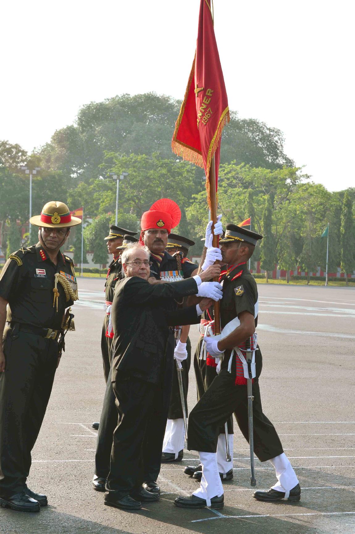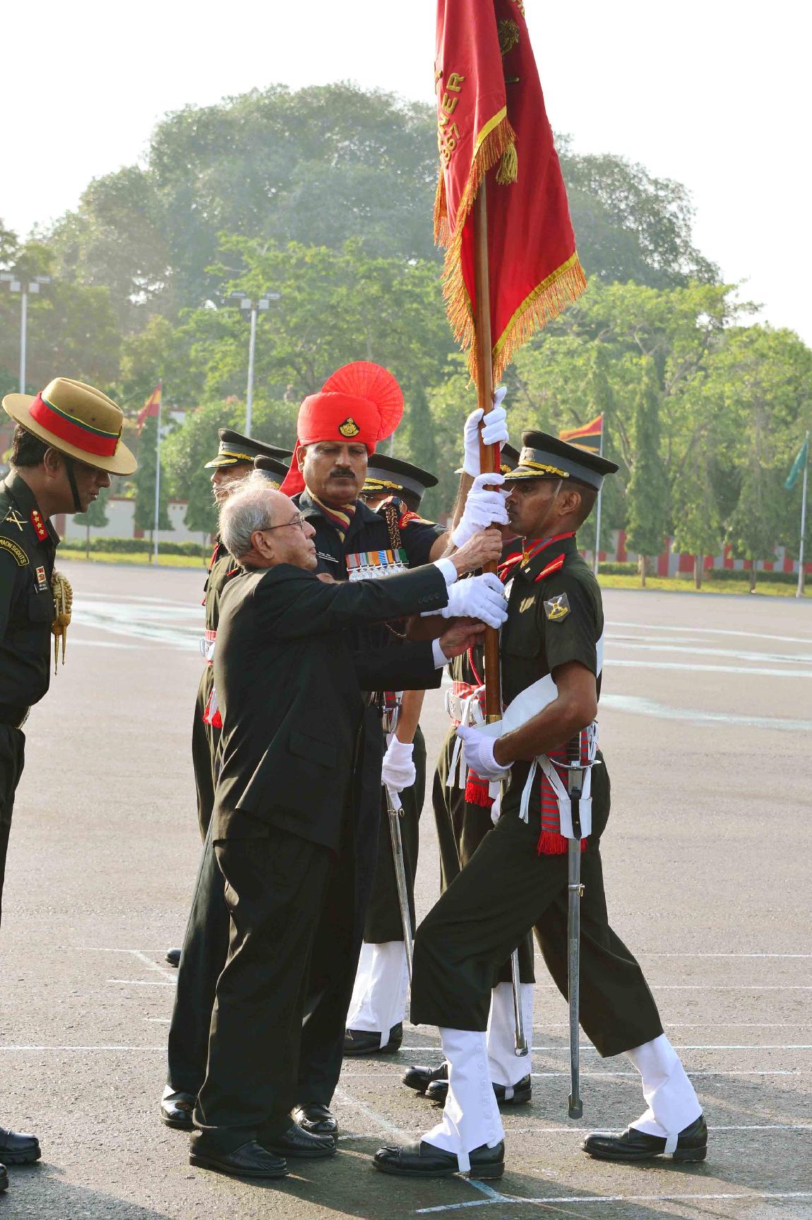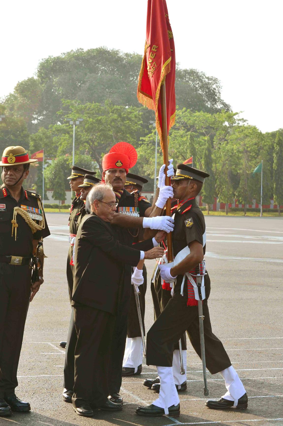| Caption: | The President of India, Shri Pranab Mukherjee presenting the banner for Champion Company to Mektila Company, at the passing out parade of the Summer Term, at Officers Training Academy, in Chennai, Tamil Nadu on September 10, 2016. |