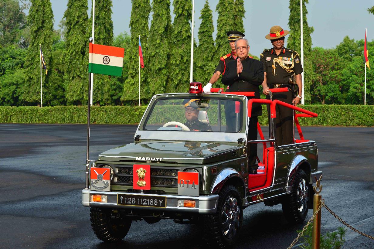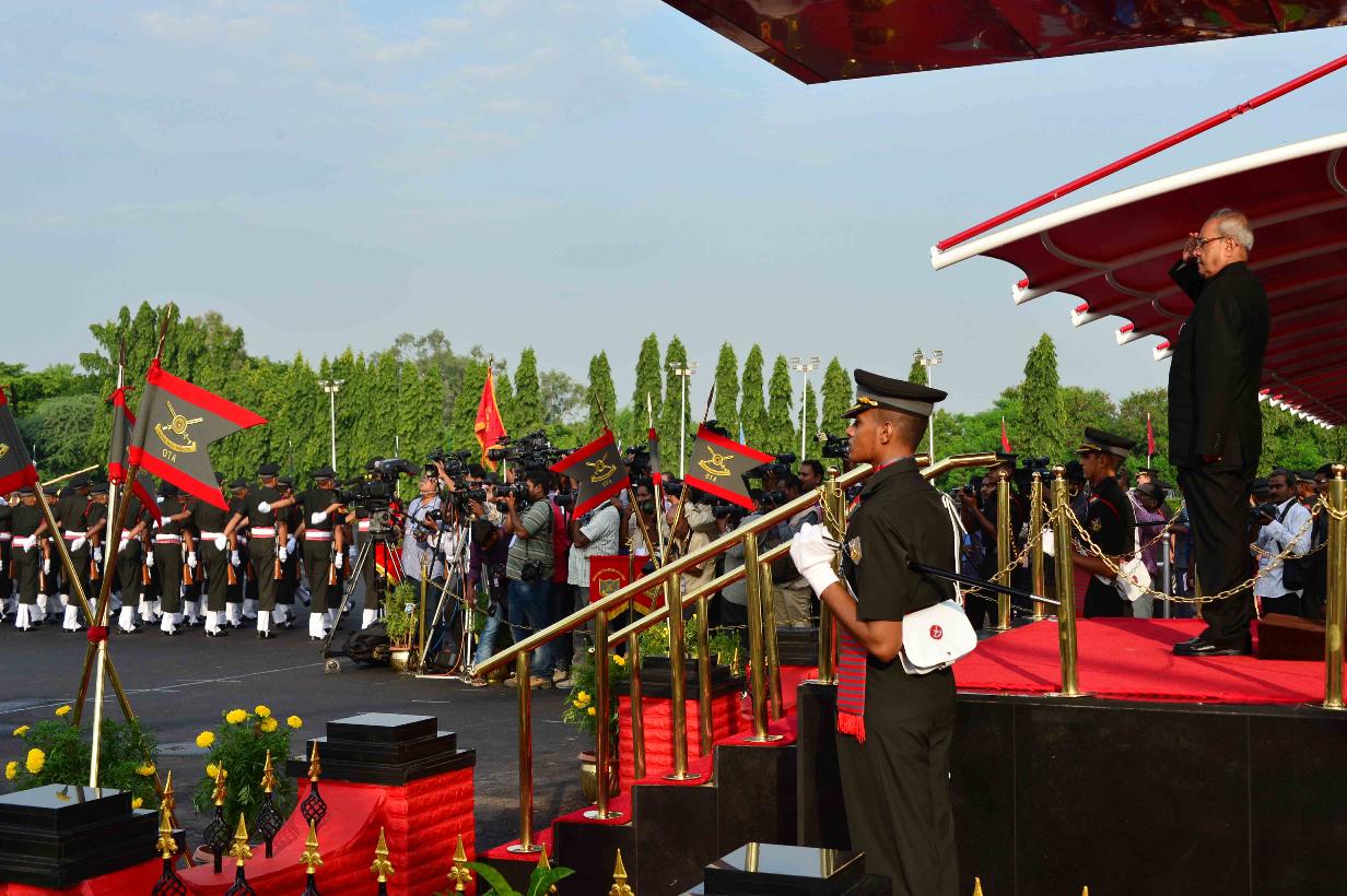 | Caption: | The President of India, Shri Pranab Mukherjee reviewing the passing out parade of the Summer Term, at Officers Training Academy, in Chennai, Tamil Nadu on September 10, 2016. |