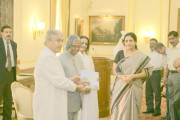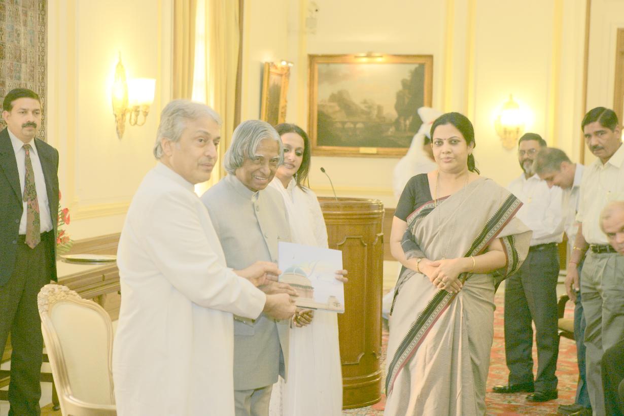| Caption: | The President of India, Dr A P J Abdul Kalam receiving a Copy of the Book "Indradhanush - Celebrating Art" from the Internal Financial Adviser, Smt Rasika Chaube at the Yellow Drawing Room of Rashtrapati Bhavan in New Delhi on Sep 18, 2006 |