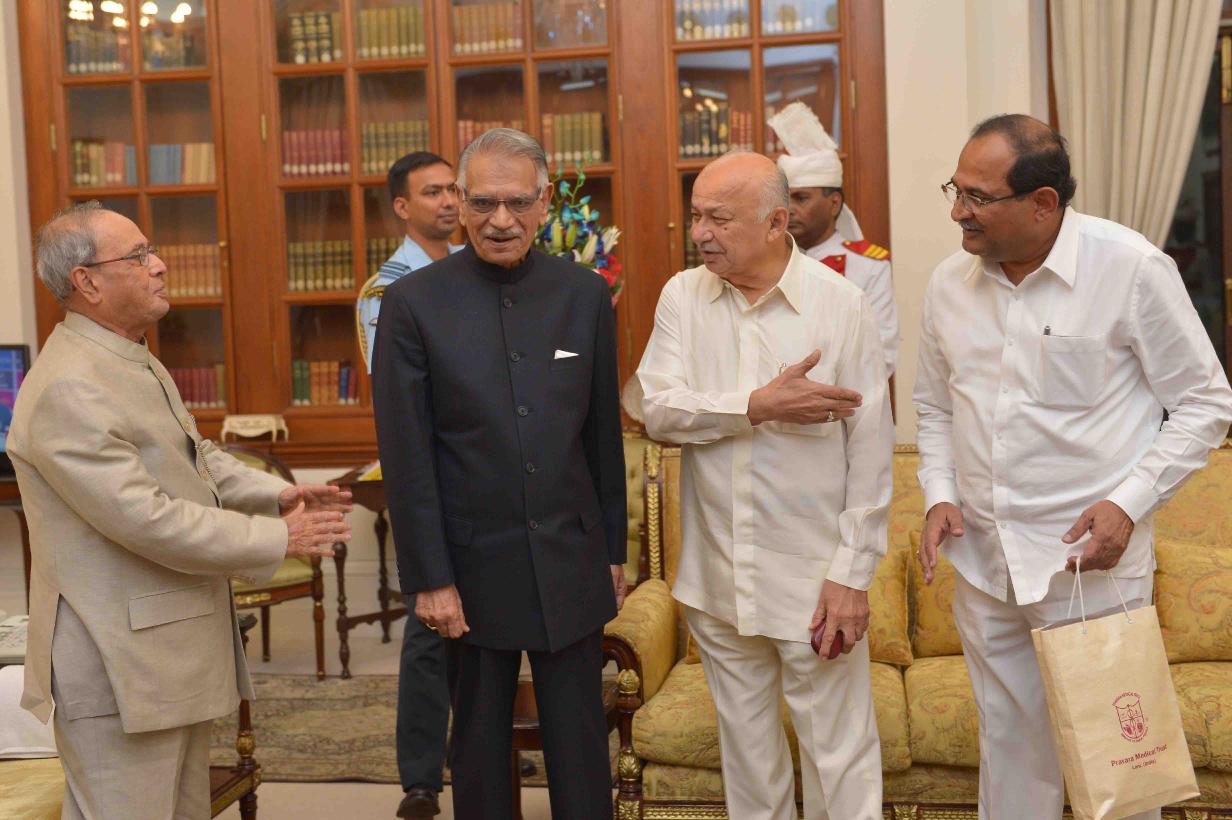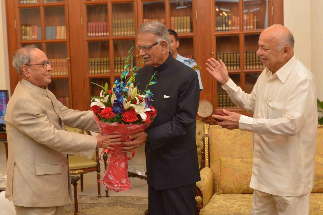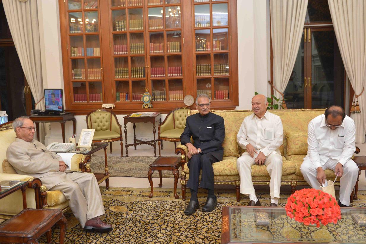 | Caption: | The President of India, Shri Pranab Mukherjee meeting with Shri Shivraj Patil, former Governor of Punjab, Shri Sushilkumar Shinde, former Union Home Minister and Shri Radhakrishna Vikhe Patil, Leader of Opposition, Maharashtra Legislative Assembly, at Rashtrapati Bhavan on September 20, 2016. |