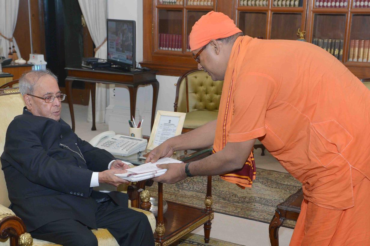 | Caption: | The President of India, Shri Pranab Mukherjee meeting with Swami Raghabatmananda from Ramakrishna Vivekananda Mission, at Rashtrapati Bhavan on October 06, 2016. |