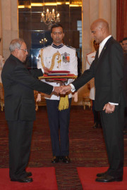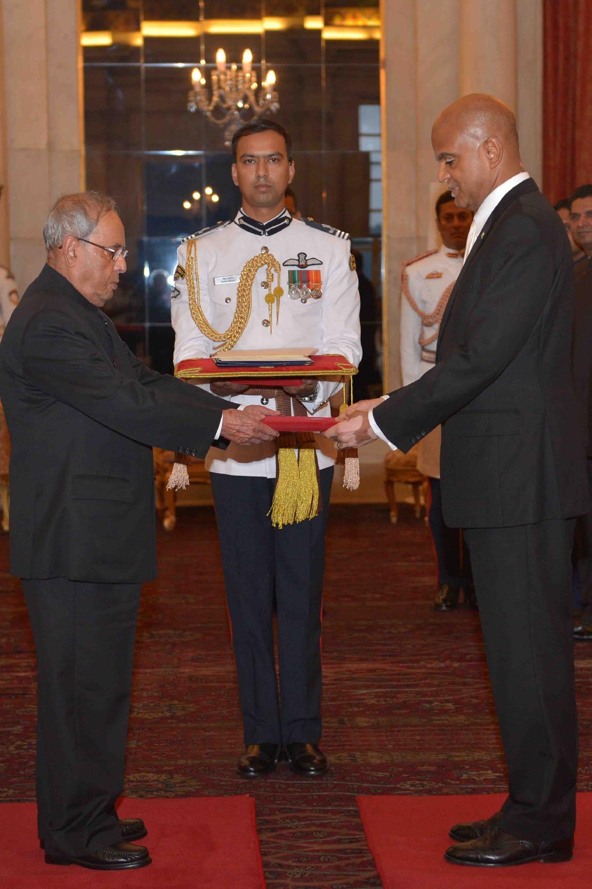 | Caption: | The High Commissioner-Designate of Guyana, H.E. Dr. David Goldwin Pollard presenting his credentials to the President of India, Shri Pranab Mukherjee, at Rashtrapati Bhavan on September 21, 2016. |