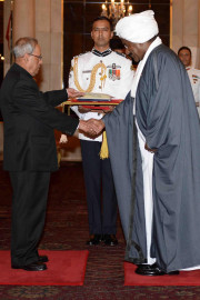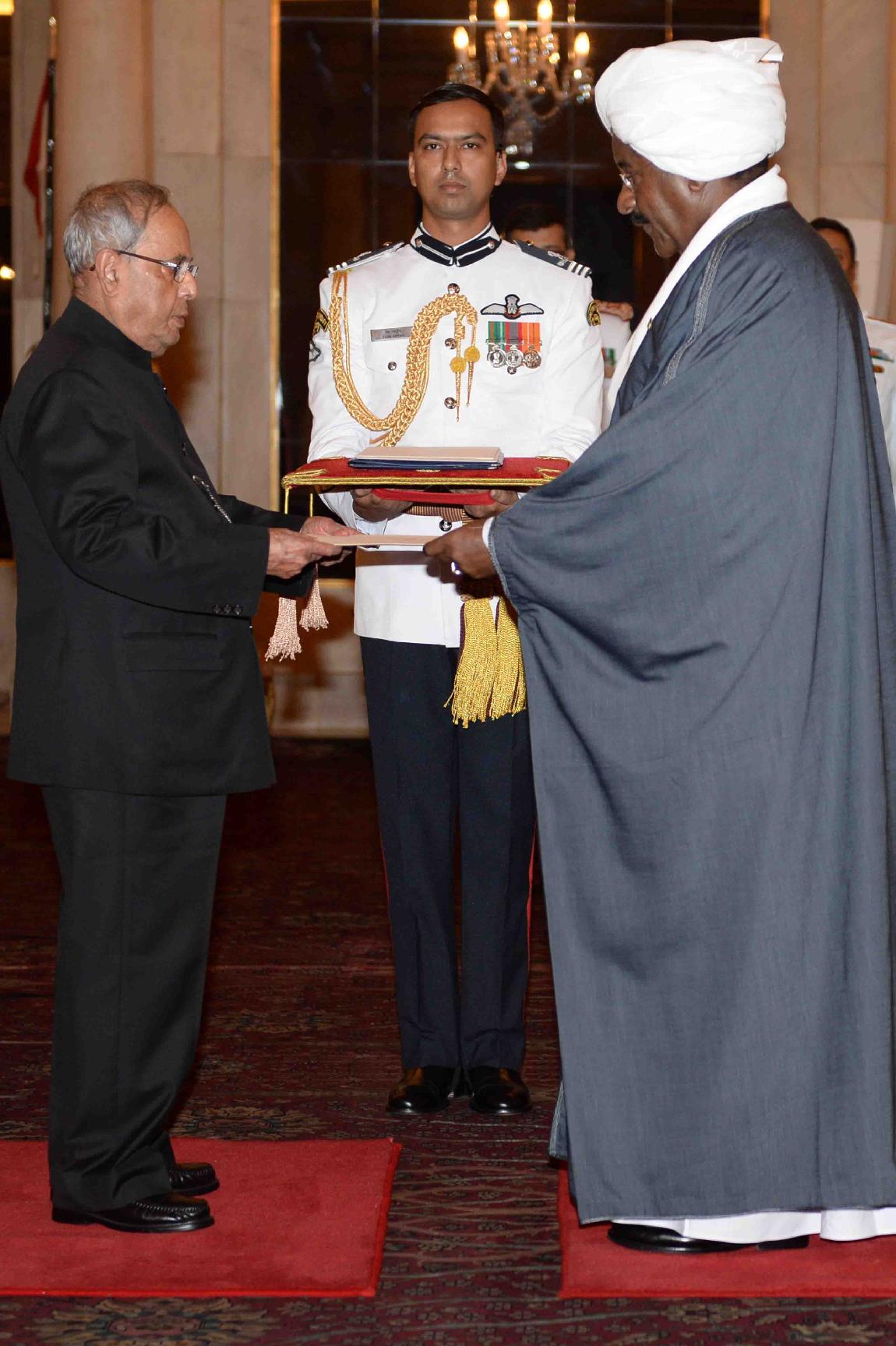 | Caption: | The Ambassador-Designate of Sudan, H.E. Mr. Sirajuddin Hamid Yousif presenting his credentials to the President of India, Shri Pranab Mukherjee, at Rashtrapati Bhavan on September 21, 2016. |