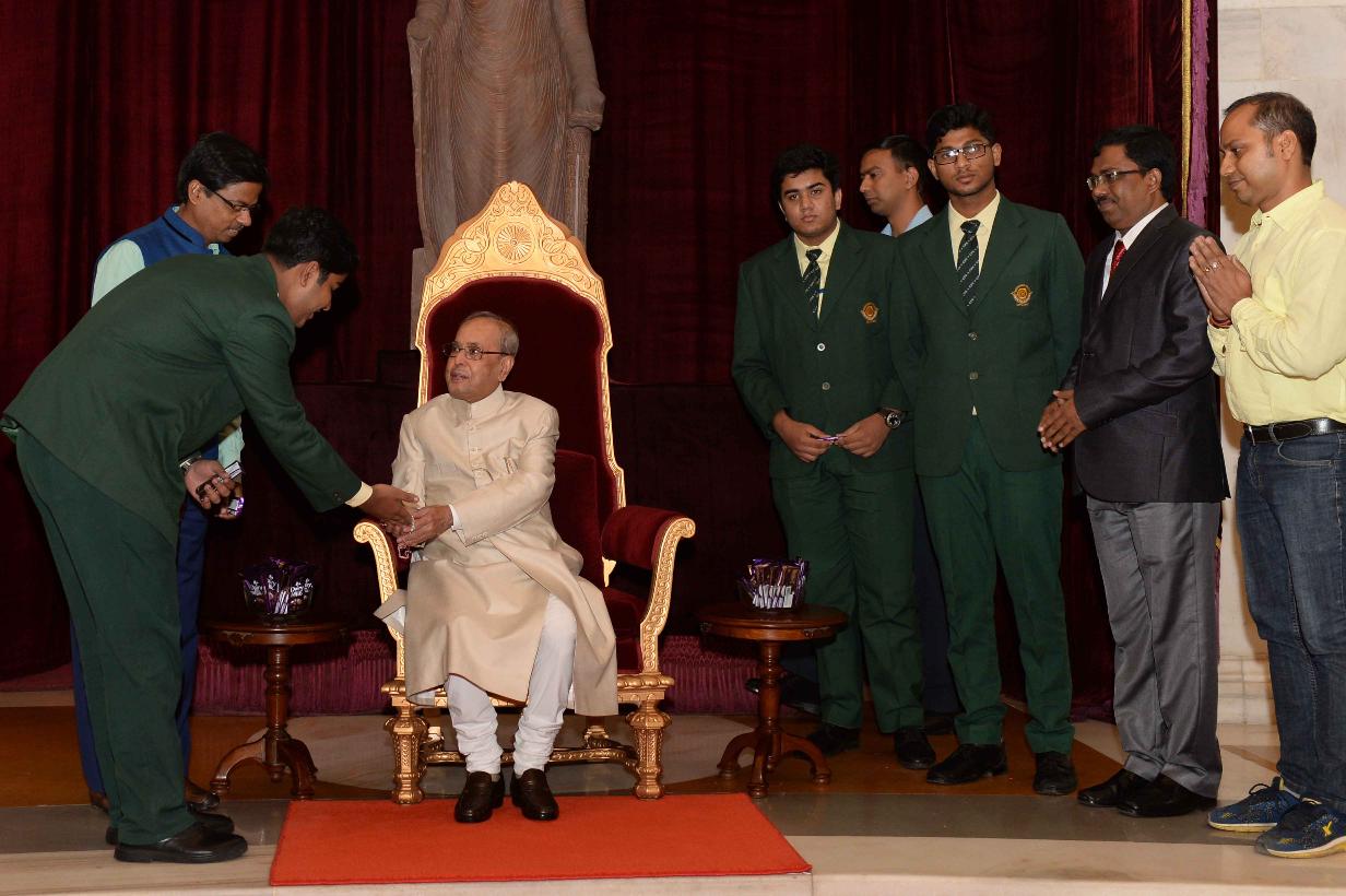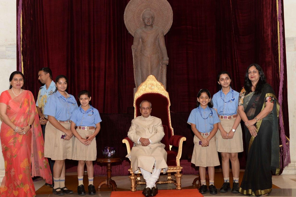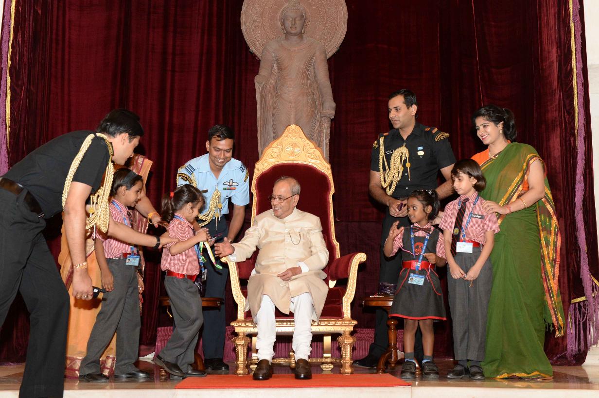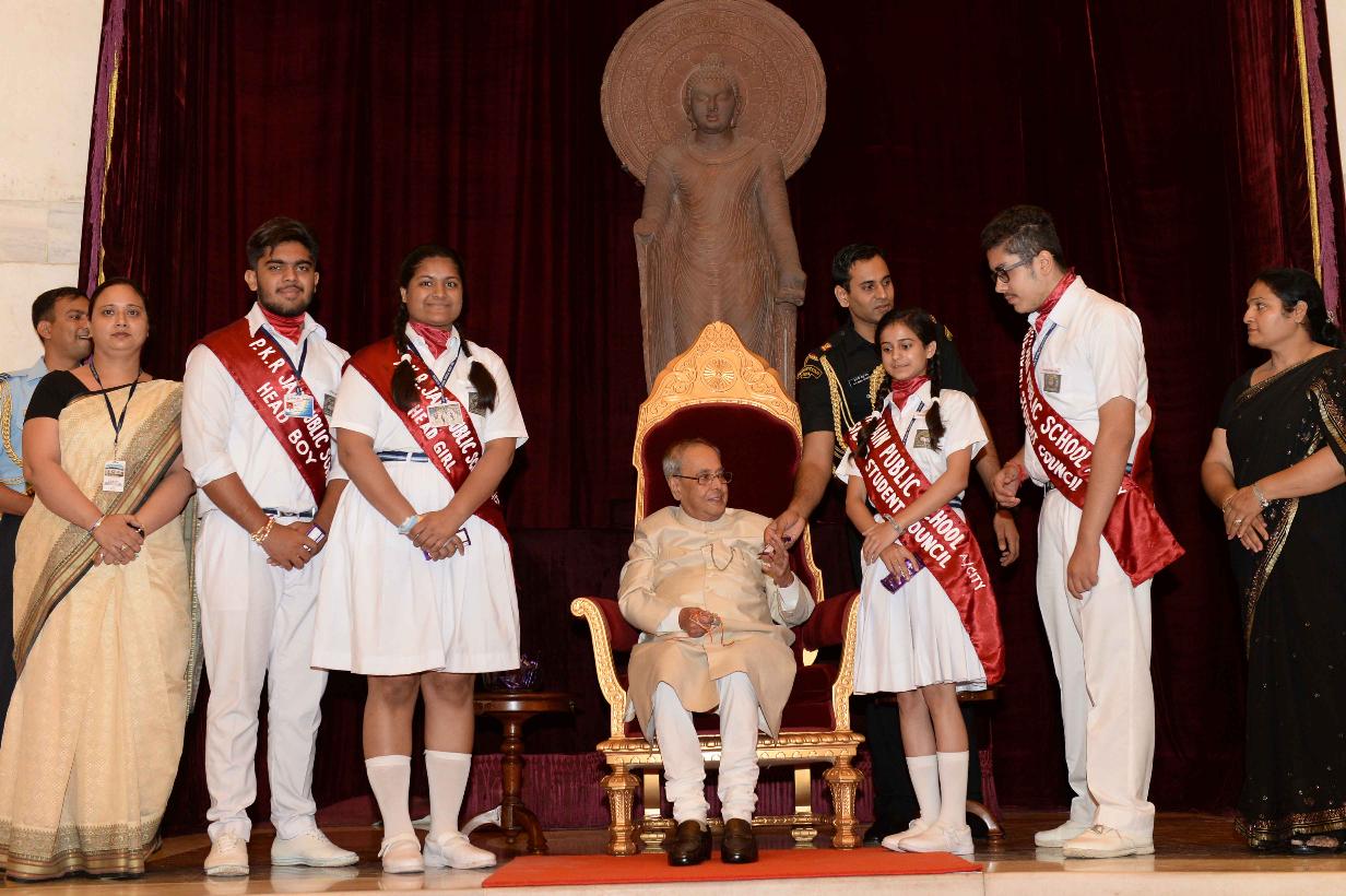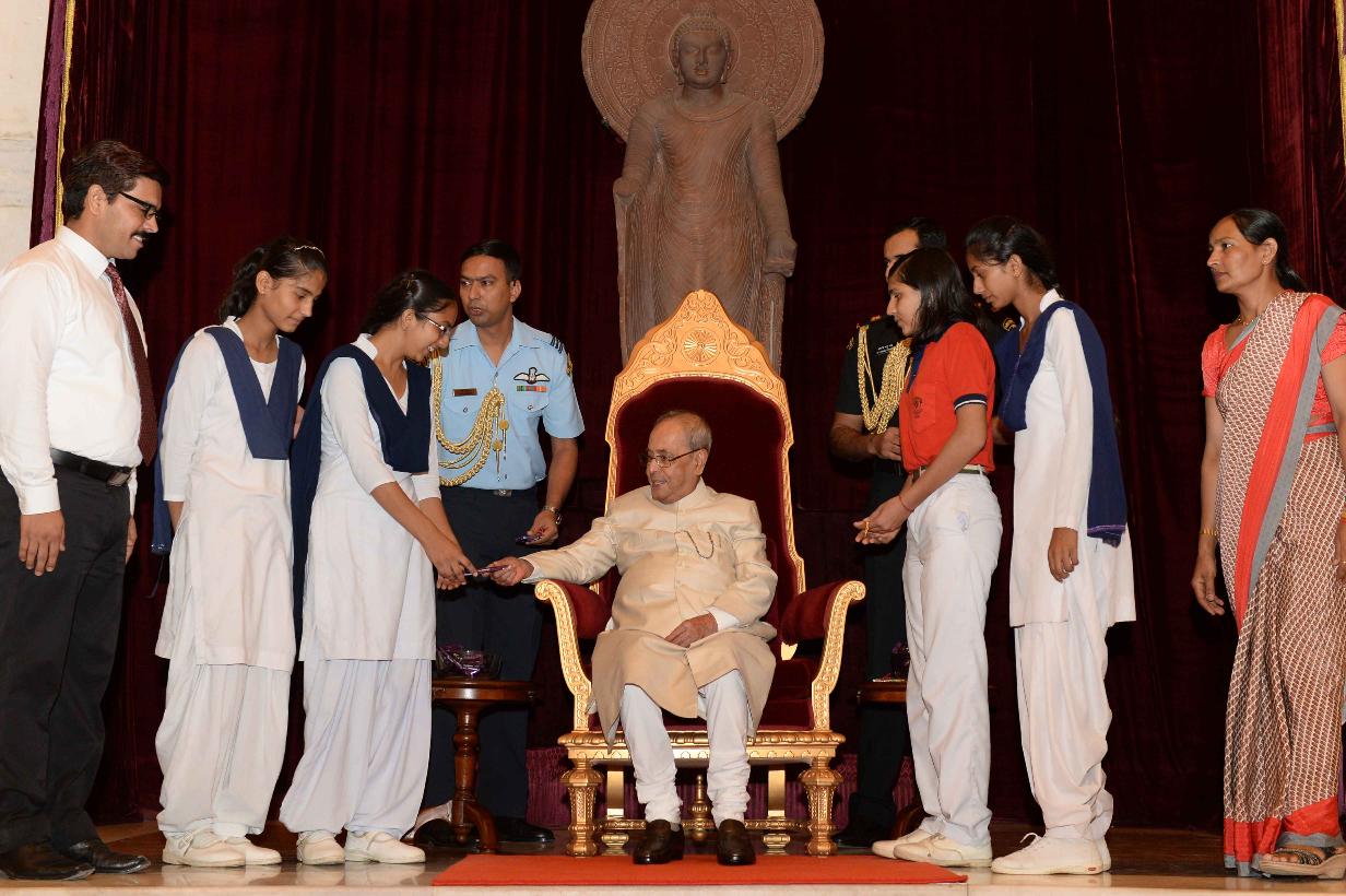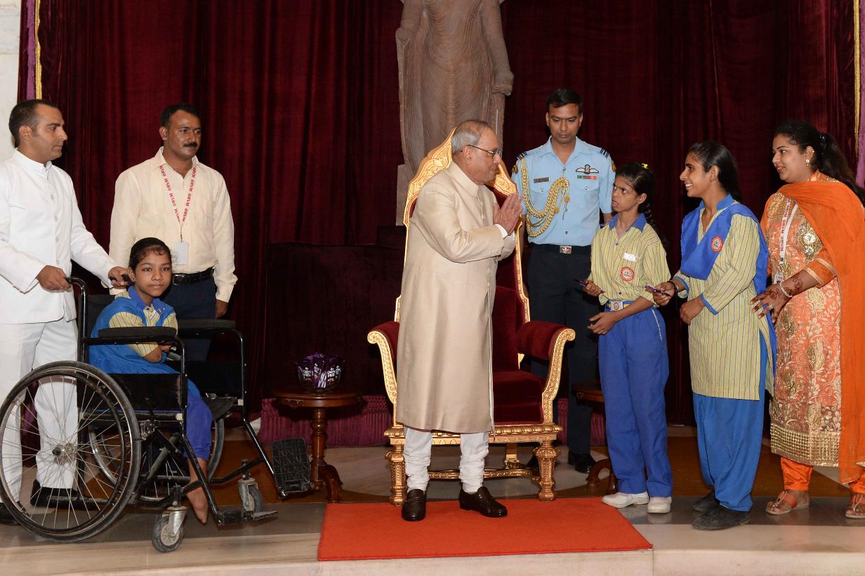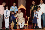 | Caption: | The President of India, Shri Pranab Mukherjee receiving Raksha Bandhan Greetings from the children/students from various schools/organizations at Rashtrapati Bhavan on August 18, 2016. |