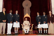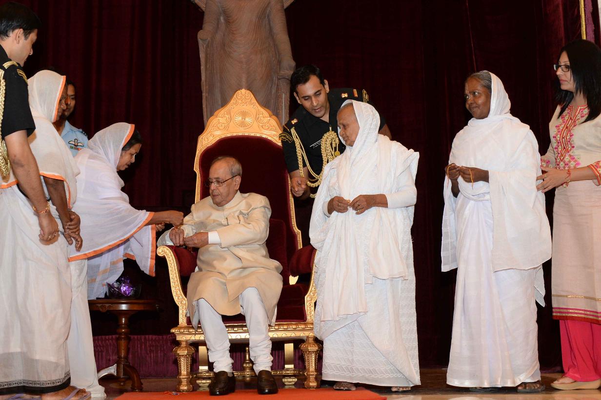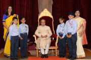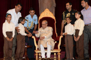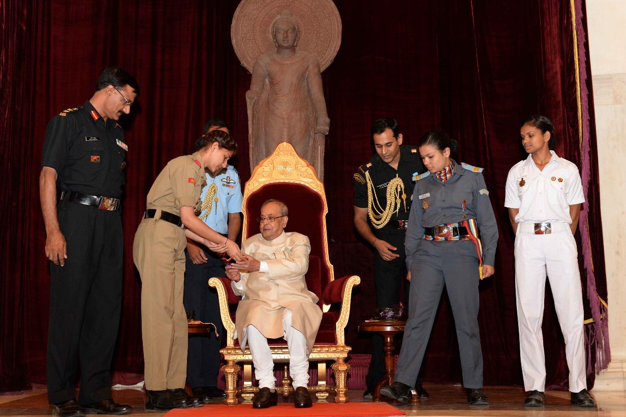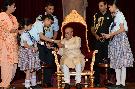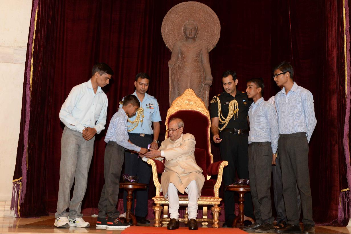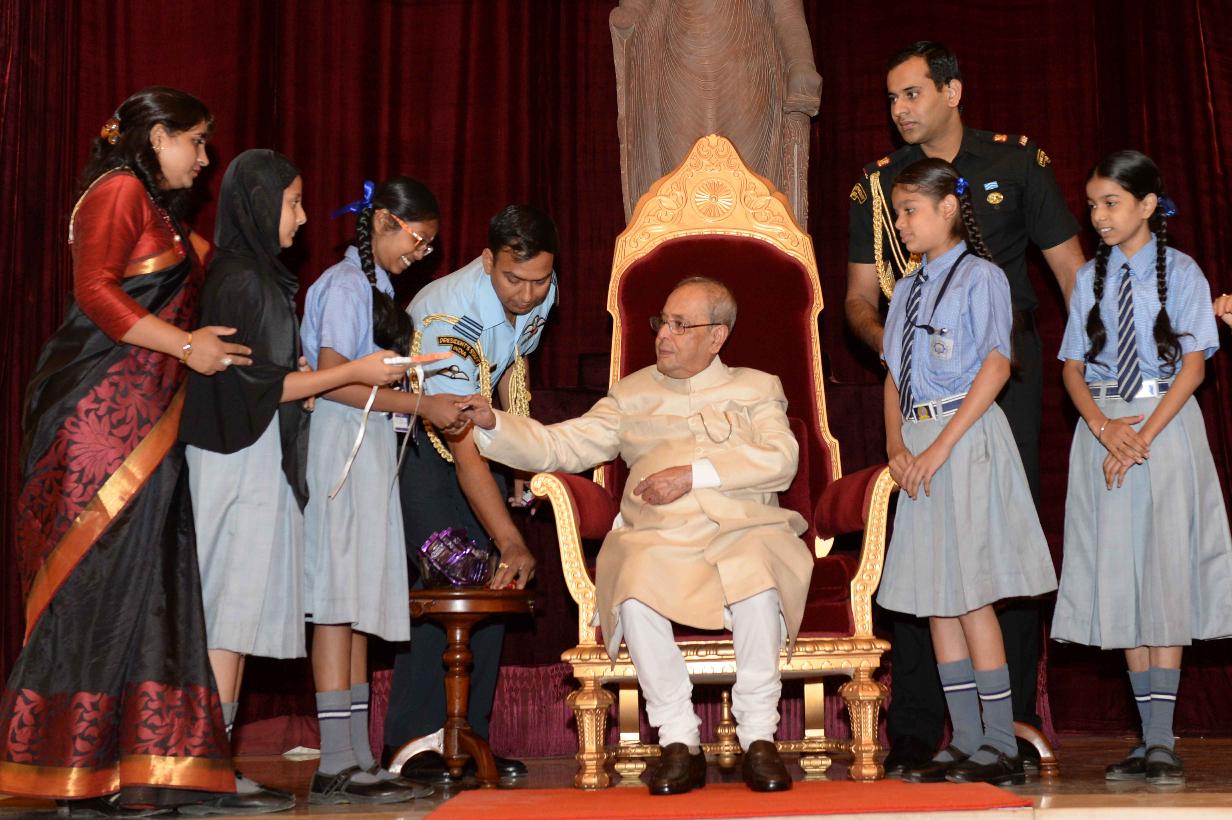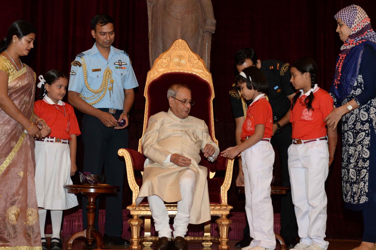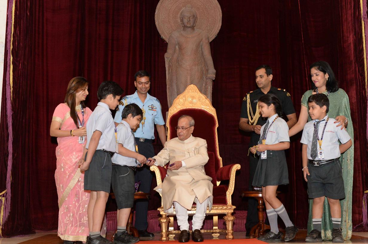 | Caption: | The President of India, Shri Pranab Mukherjee receiving Raksha Bandhan Greetings from the children/students from various schools/organizations at Rashtrapati Bhavan on August 18, 2016. |