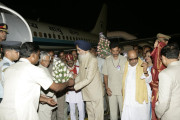 | Caption: | The President of India, Dr A P J Abdul Kalam being welcomed by the Governor of Tamil Nadu, Shri Surjit Singh Barnala at Chennai Airport in Tamil Nadu on Sep 03, 2006 |