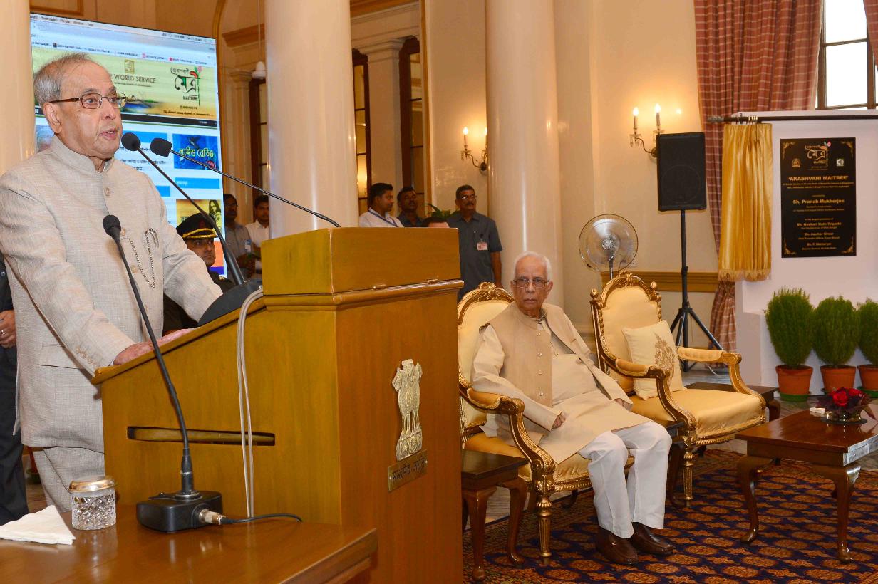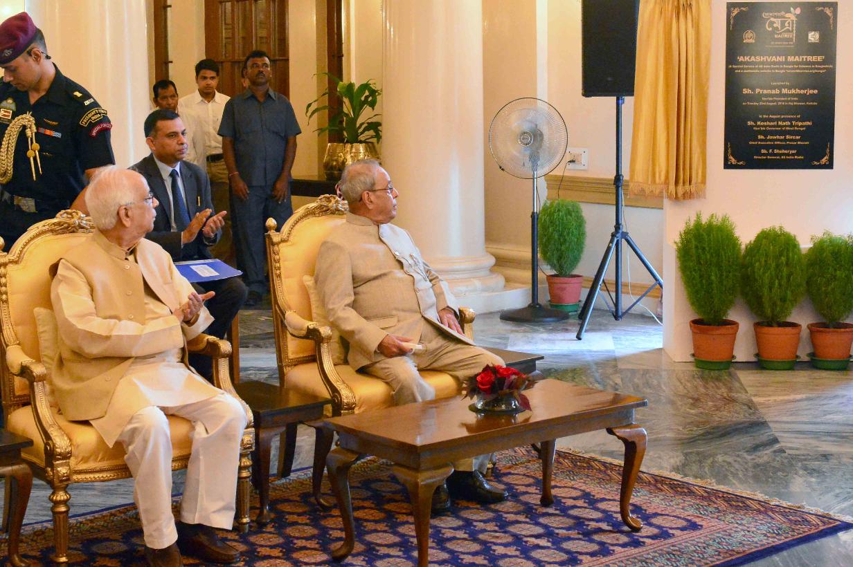 | Caption: | The President of India, Shri Pranab Mukherjee launching the Akasvani's Moitree Service in Bangla for Listeners in Bangladesh, at Raj Bhavan, in Kolkata on August 23, 2016. |