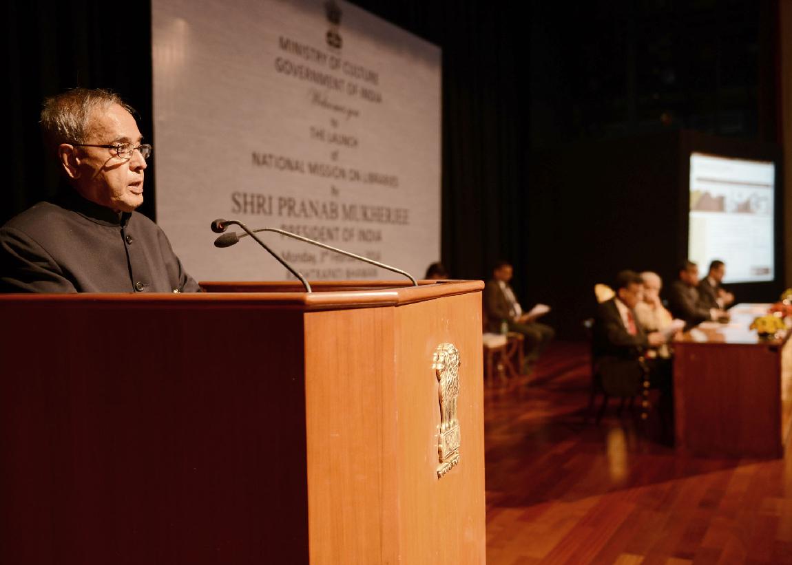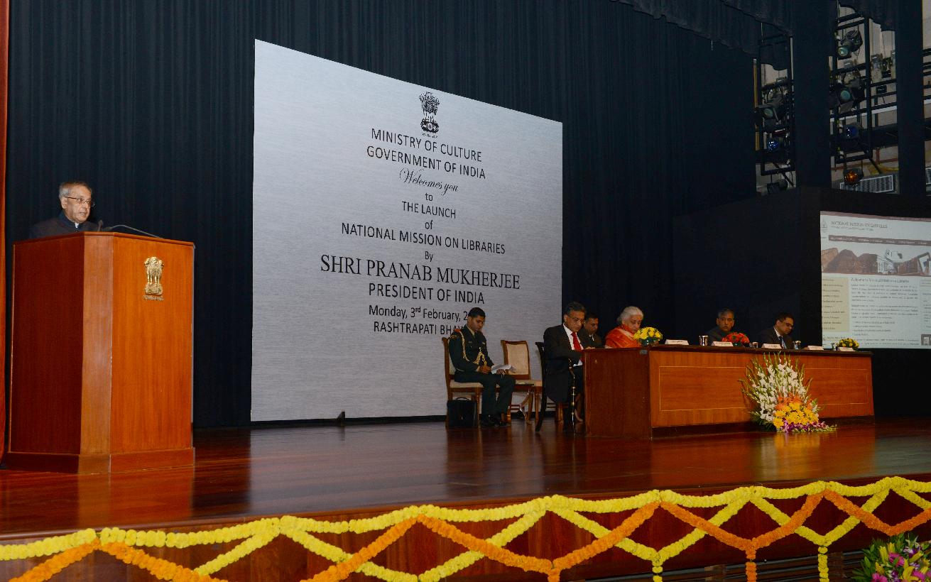 | Caption: | The President of India, Shri Pranab Mukherjee launching the National Mission on Libraries at Rashtrapati Bhavan Auditorium in New Delhi on Feb 03, 2014 |