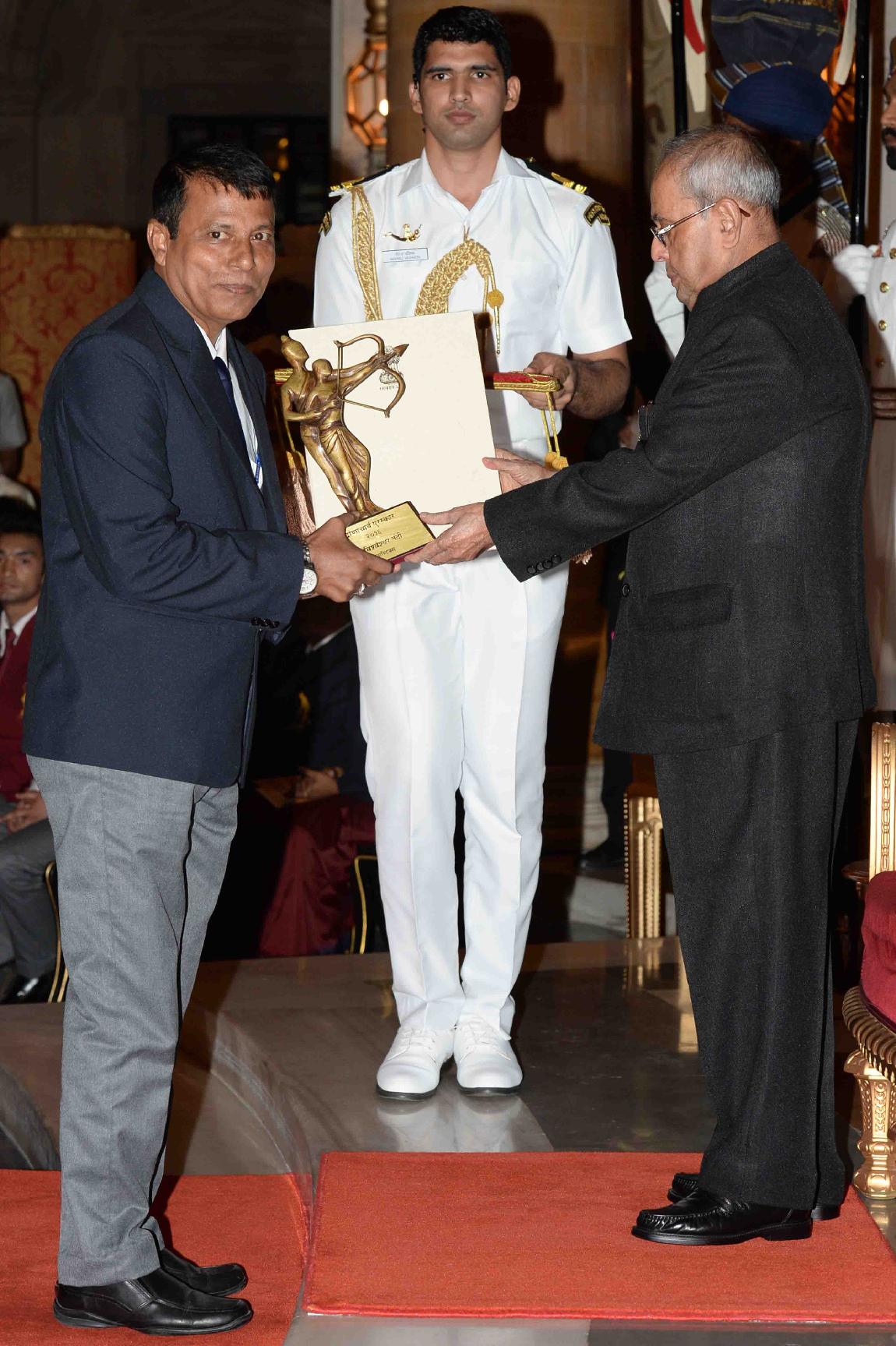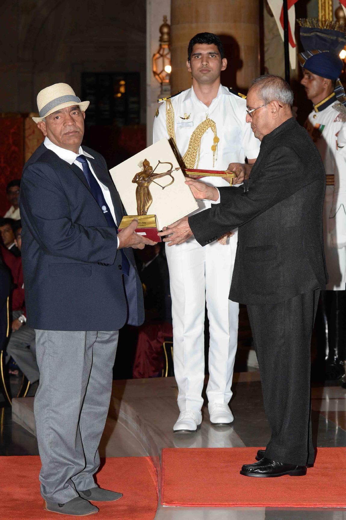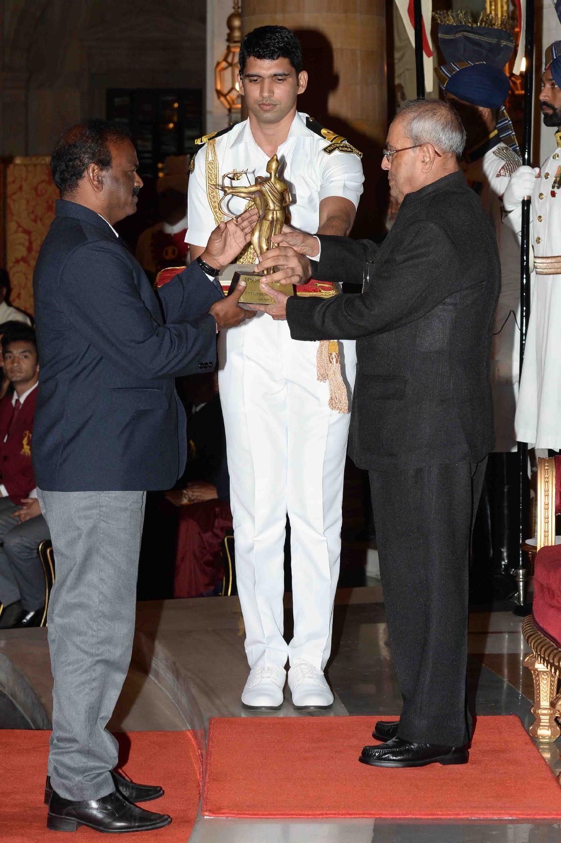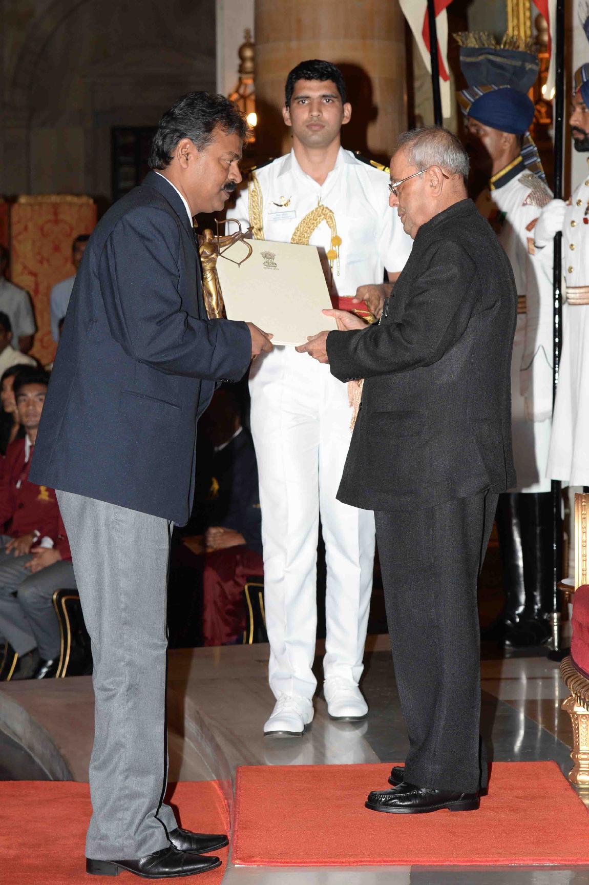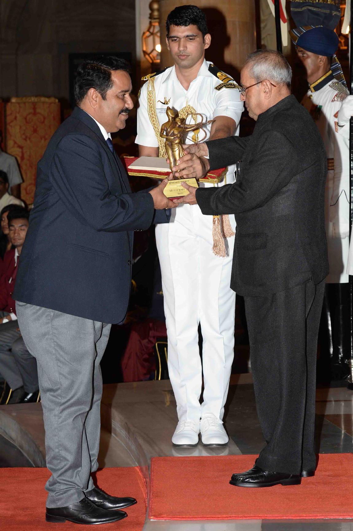 | Caption: | The President of India, Shri Pranab Mukherjee presenting the Dronacharya Awards 2016, at the National Sports & Adventure Awards function, at Rashtrapati Bhavan on August 29, 2016. |