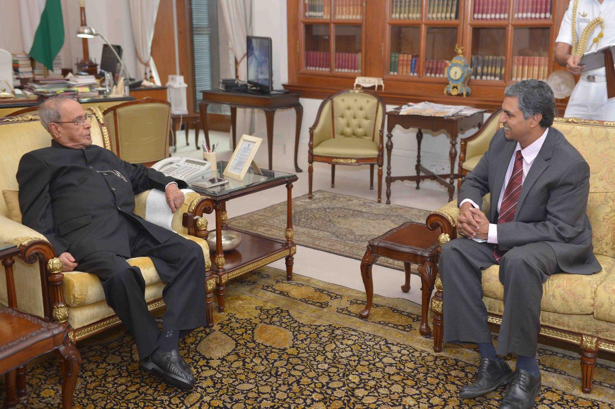 | Caption: | The President of India, Shri Pranab Mukherjee meeting with Shri P. Kumaran, Ambassador -designate of India to the State of Qatar, at Rashtrapati Bhavan on September 01, 2016. |