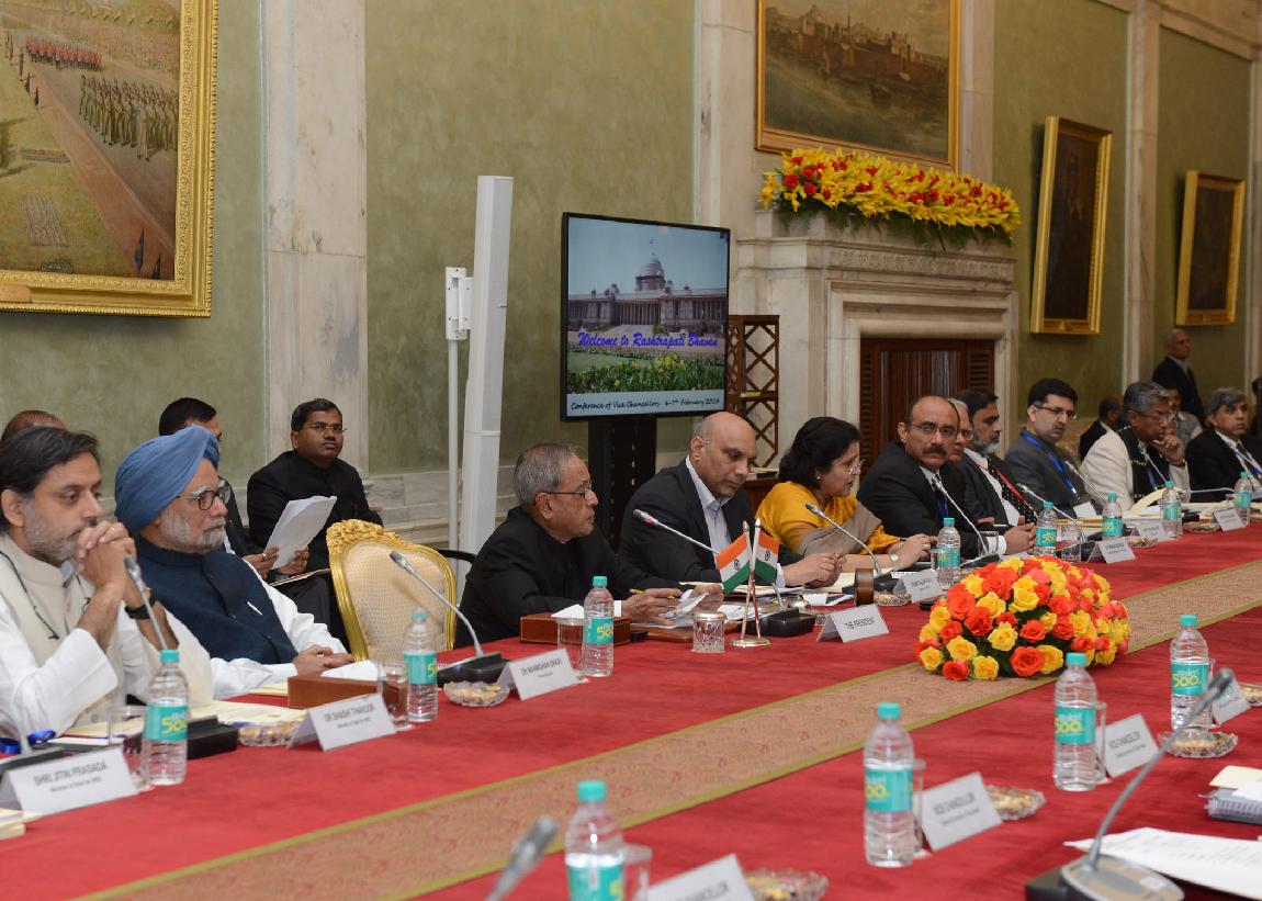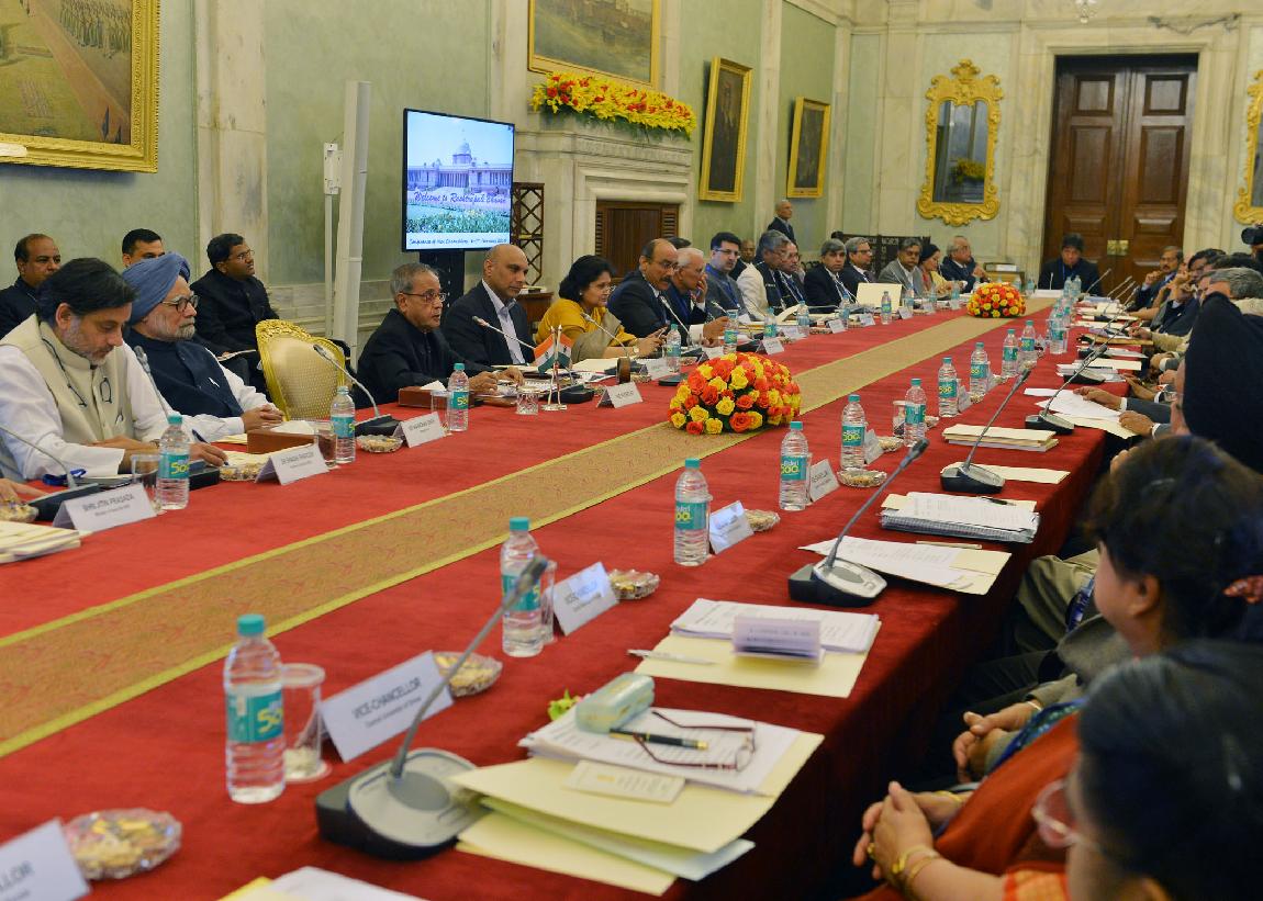 | Caption: | The President of India, Shri Pranab Mukherjee at the Conference of Vice Chancellors of Central Universities at Rashtrapati Bhavan in New Delhi on Feb 06, 2014 |
