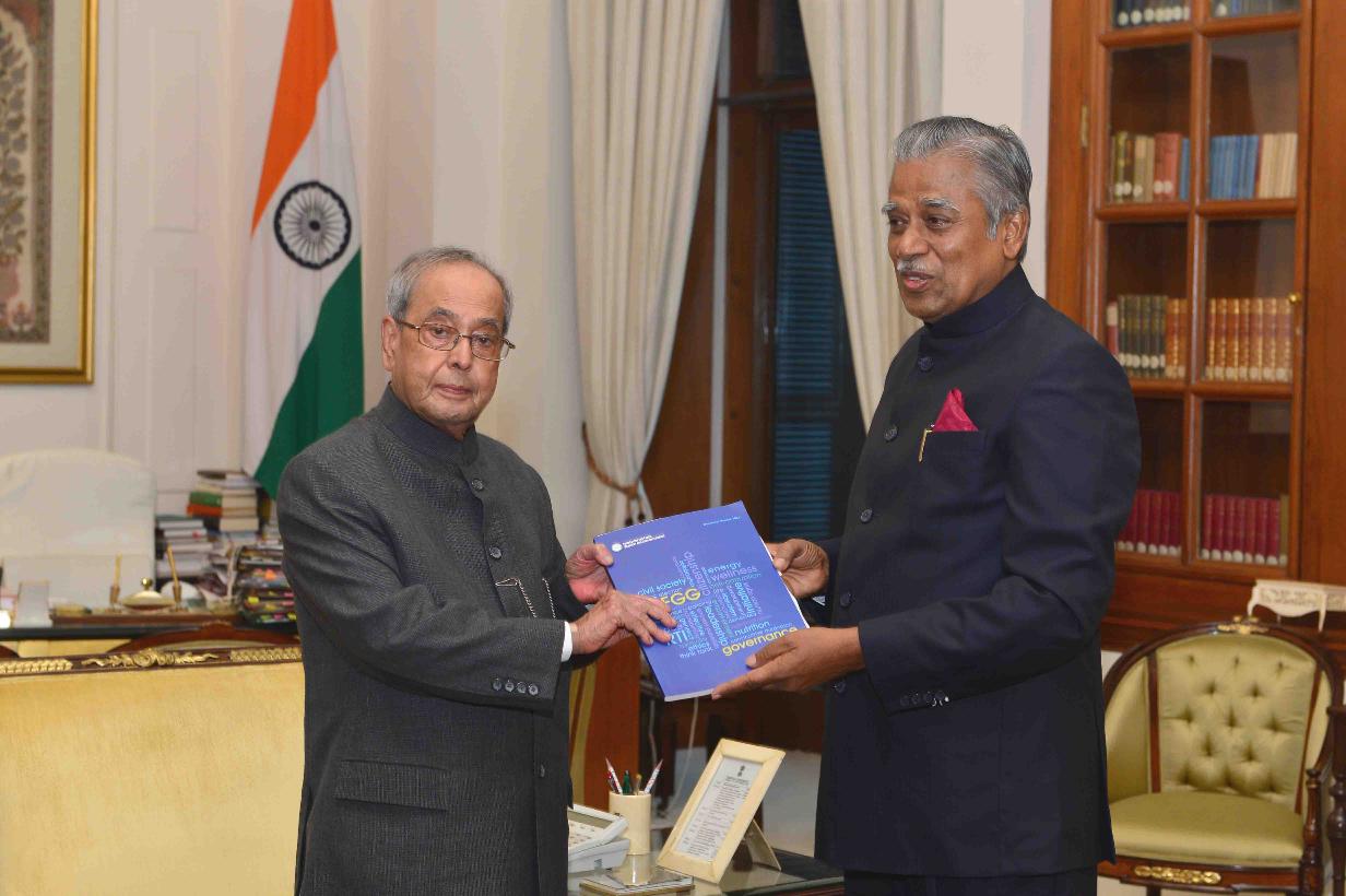 | Caption: | The President of India, Shri Pranab Mukherjee meeting with Shri D.R. Kaarthikeyan, former Director, CBI & former Director General, National Human Rights Commission, at Rashtrapati Bhavan on September 06, 2016. |