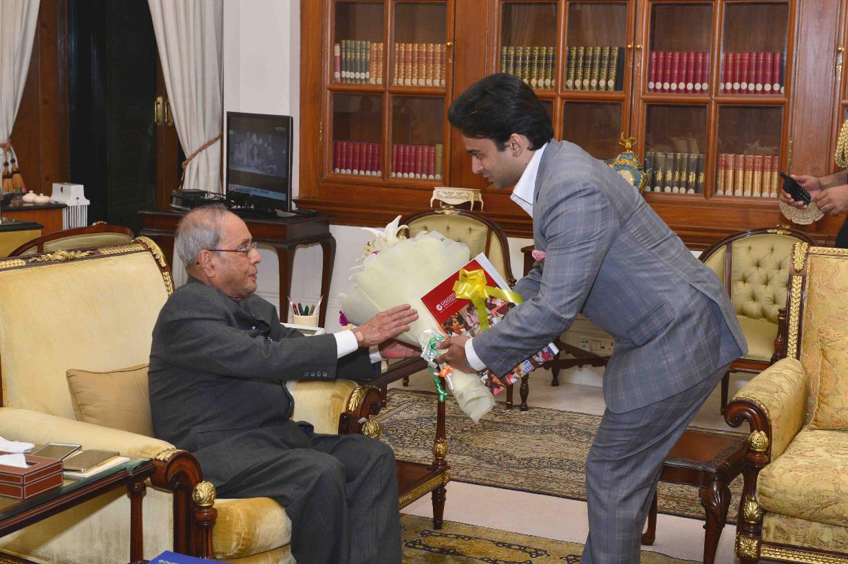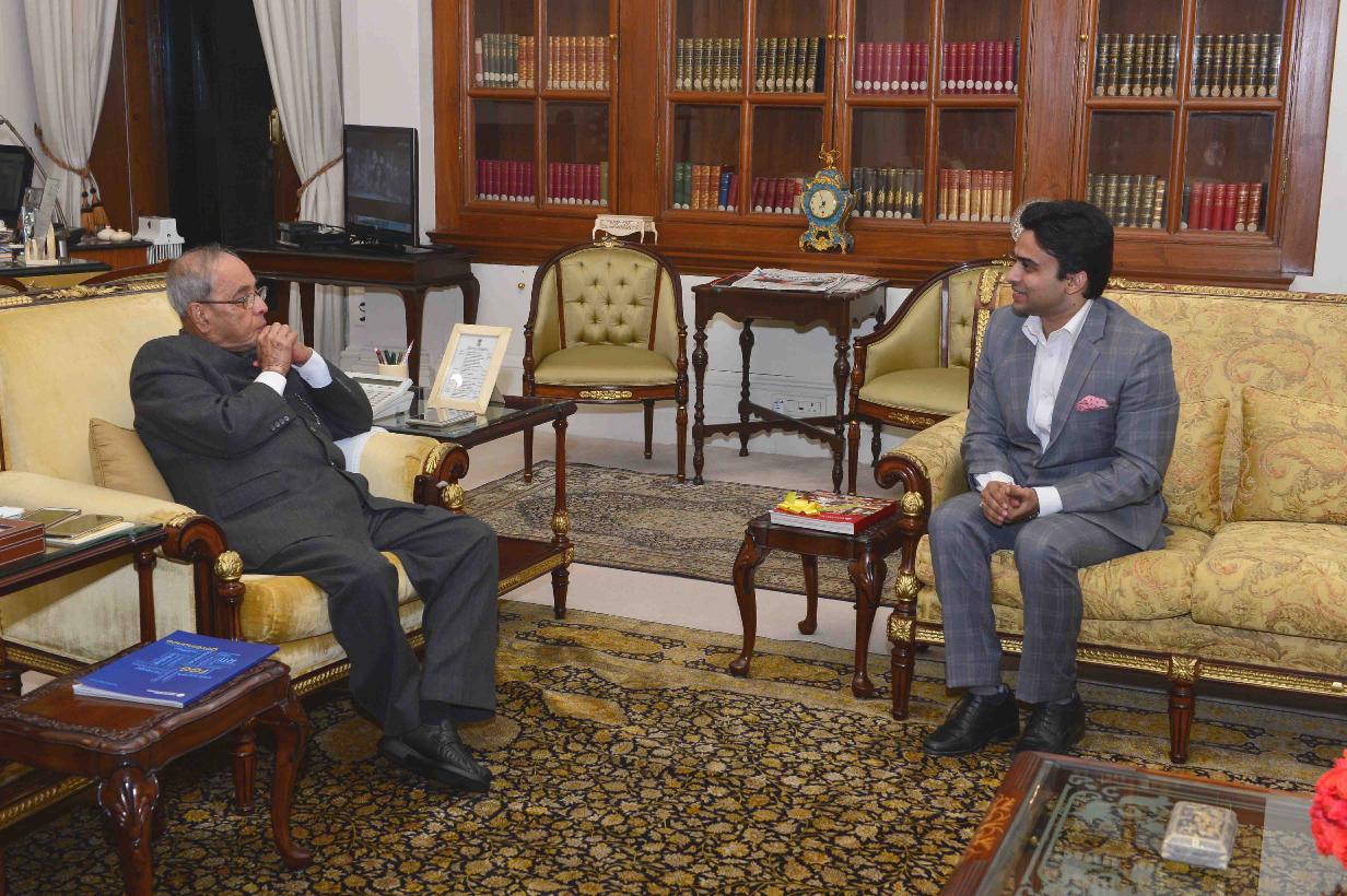 | Caption: | The President of India, Shri Pranab Mukherjee meeting with Shri Dhruv Galgotia, Chief Executive Officer, Galgotias University, Gautam Budh Nagar, at Rashtrapati Bhavan on September 06, 2016. |