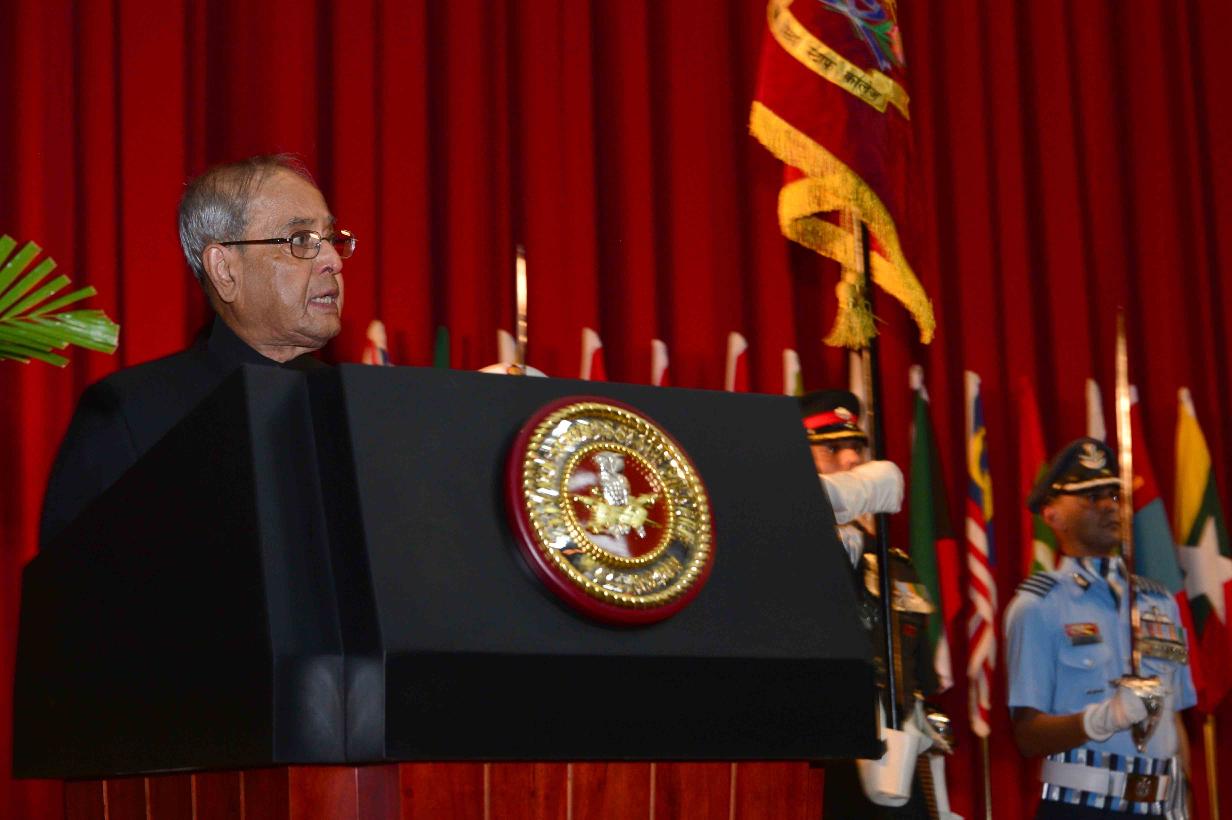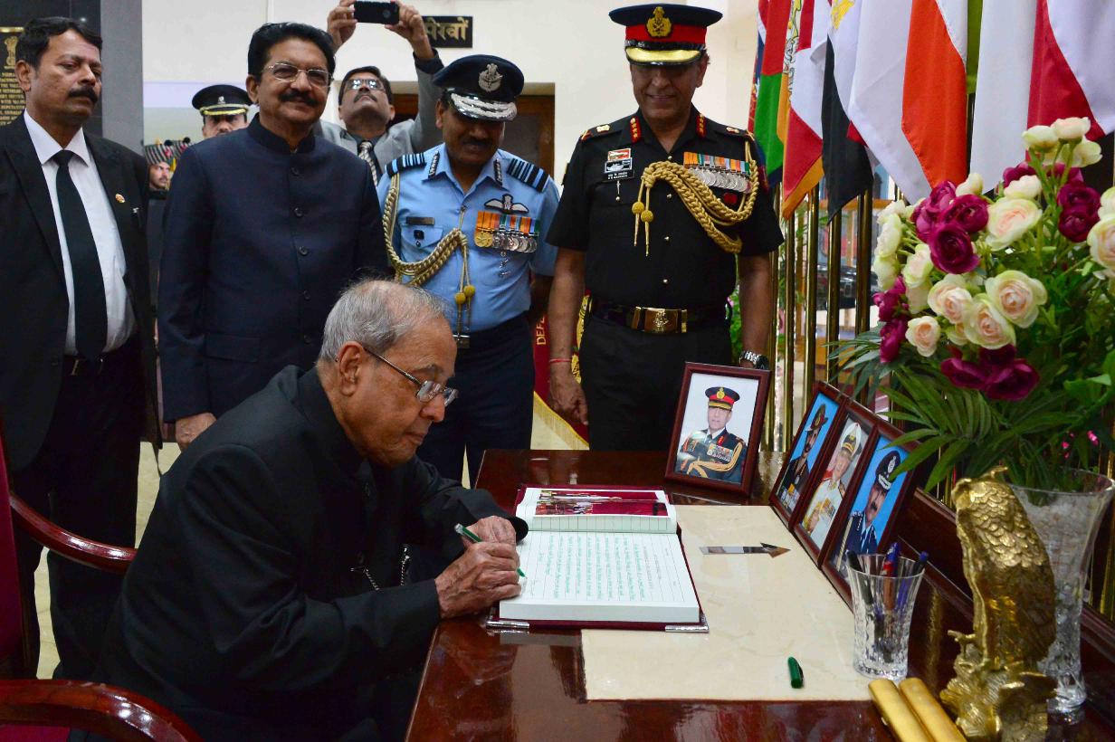 | Caption: | The President of India, Shri Pranab Mukherjee addressing at the presentation of Presidential Colours to the Defence Services Staff College (DSSC) and visiting photo exhibition of DSSC, at Wellington, Nilgiris in Tamil Nadu on September 09, 2016. |