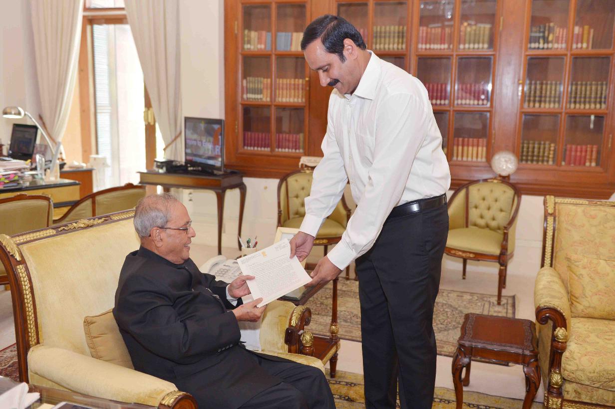 | Caption: | The President of India, Shri Pranab Mukherjee meeting with Dr. Anbumani Ramadoss, former Union Minister, at Rashtrapati Bhavan on September 15, 2016. |