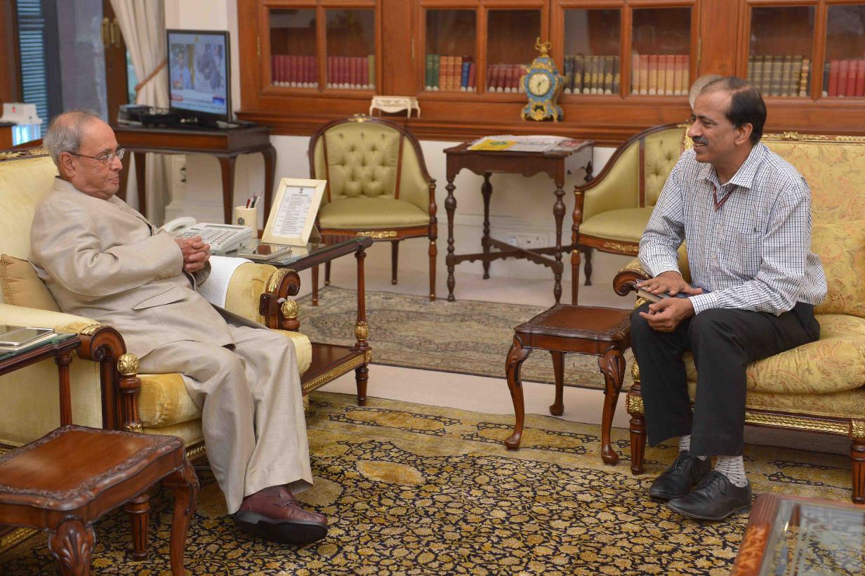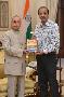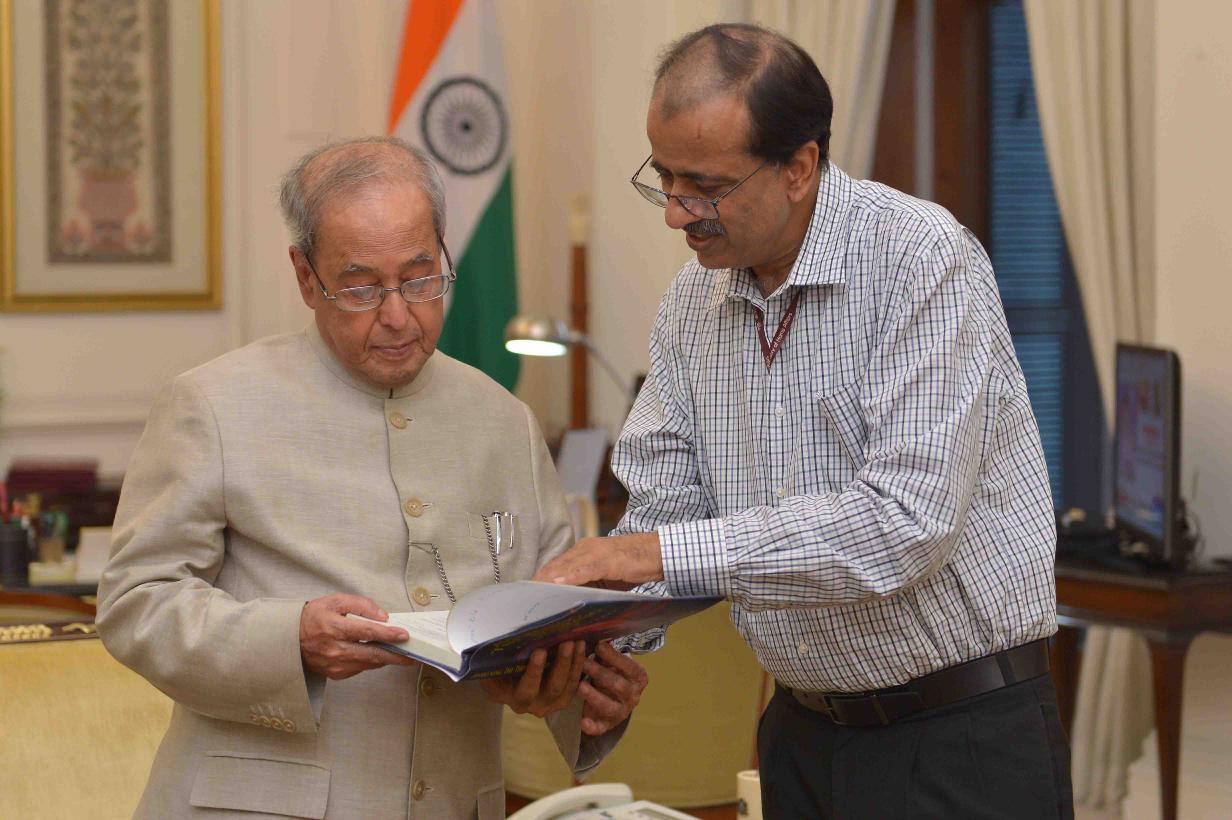 | Caption: | The President of India, Shri Pranab Mukherjee receiving a copy of the book ''Awakening The Thinking Mind-Inward Journey" from Shri Balvinder Kumar, Secretary (Mines), at Rashtrapati Bhavan on September 20, 2016. |