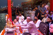 | Caption: | The President of India, Shri Pranab Mukherjee attending the Ganga Aarti , at Har Ki Pauri in Haridwar, Uttarakhand on September 29, 2016. |