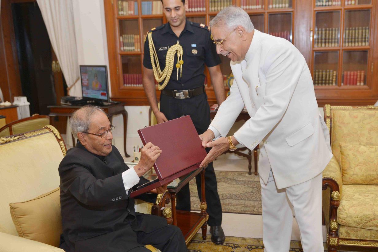 | Caption: | The President of India, Shri Pranab Mukherjee meeting with Dr. Mahendra Prasad, MP (RS), at Rashtrapati Bhavan on September 26, 2016. |