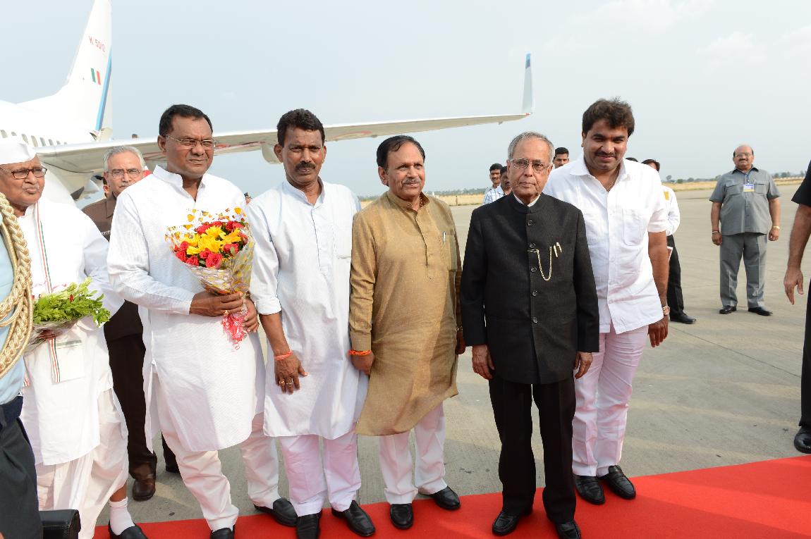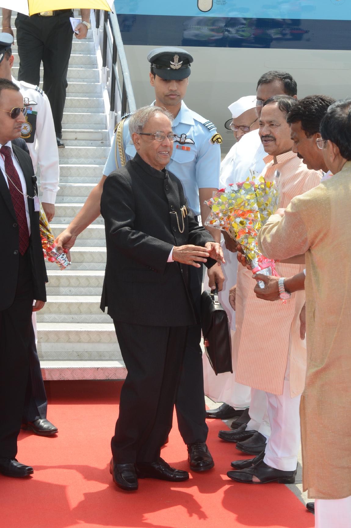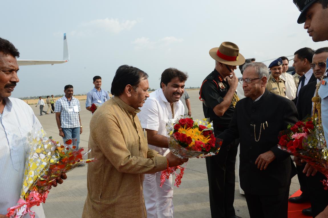 The President of India Shri Pranab Mukherjee Arrival at Indore Airport on 8 June 2013