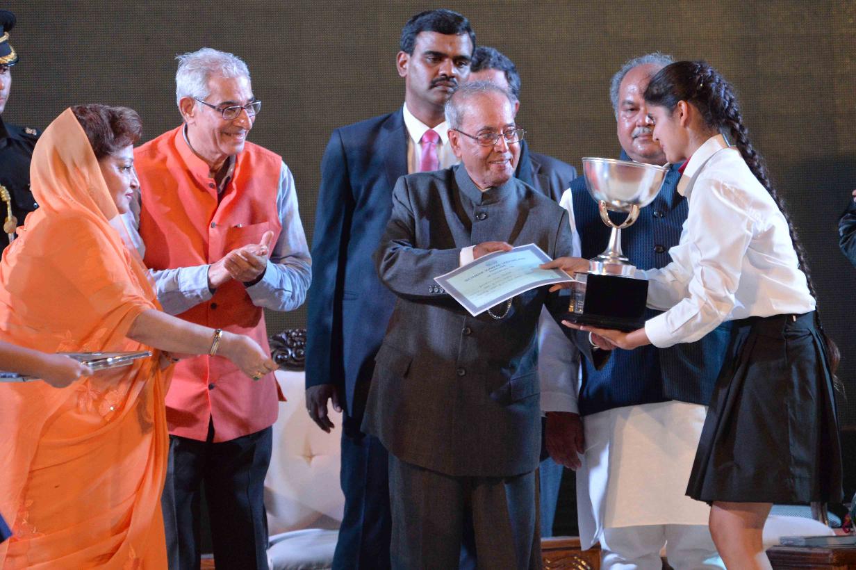 | Caption: | The President of India, Shri Pranab Mukherjee attending the 60th Founders Day Celebrations of Scindia Kanya Vidyalaya and presenting certificates to the students, in Gwalior, Madhya Pradesh on October 03, 2016. |