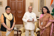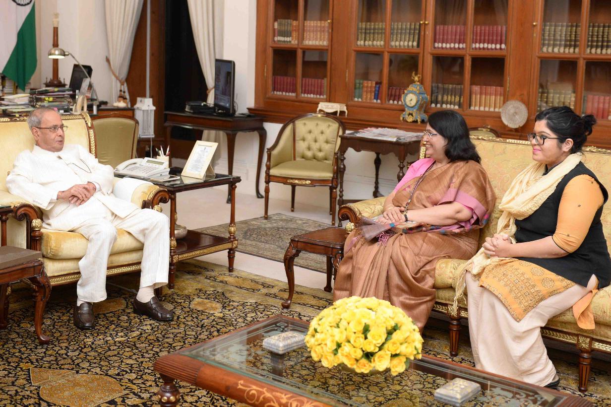 | Caption: | The President of India, Shri Pranab Mukherjee receiving a book "Mahanadi" from Smt. Anita Agnihotri, Secretary, Ministry of Social Justice & Empowerment, at Rashtrapati Bhavan on October 12, 2016. |
