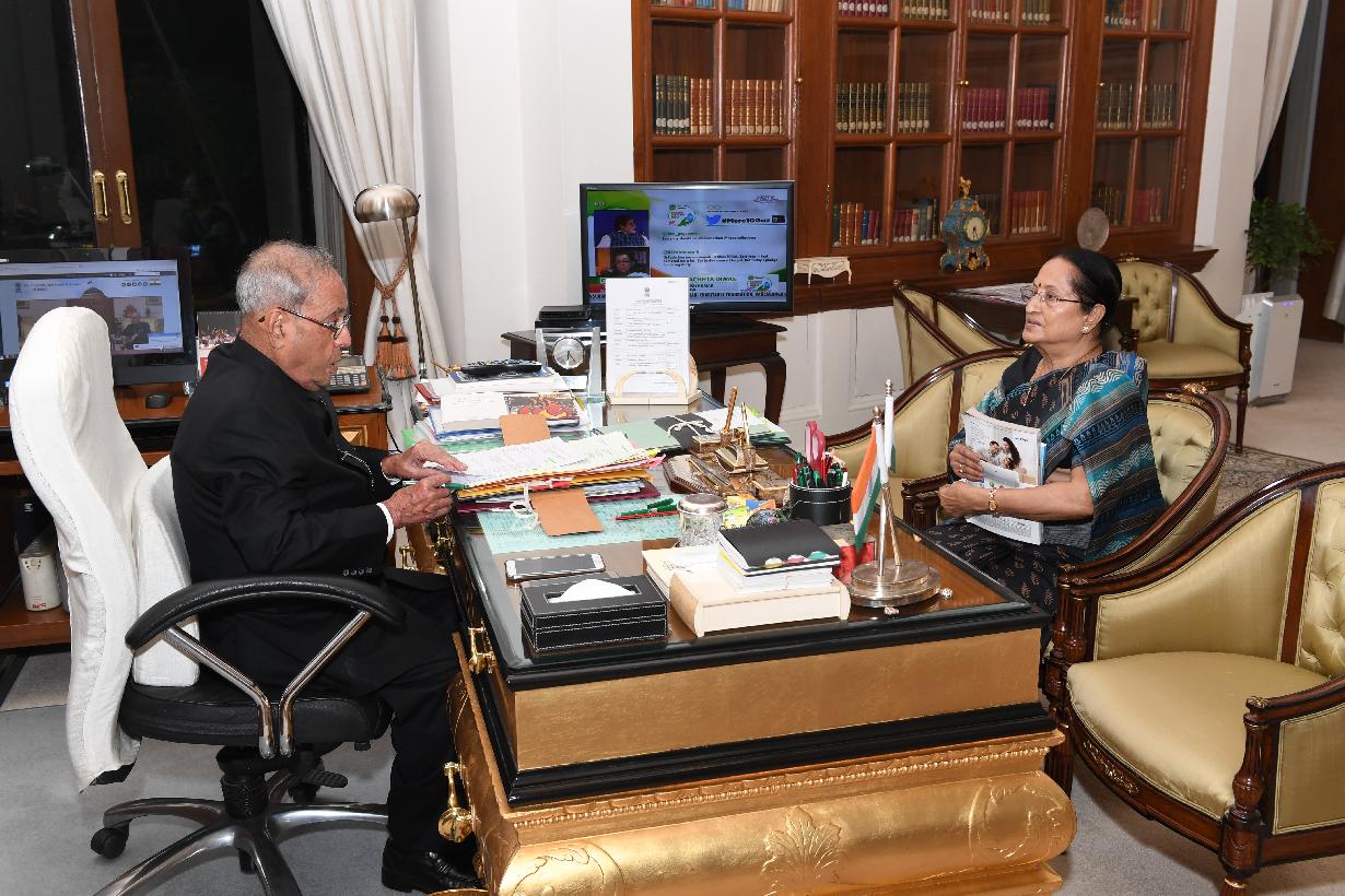 | Caption: | The President of India, Shri Pranab Mukherjee meeting with Ms. Jyotsana Goswami, at Rashtrapati Bhavan on October 02, 2016. |