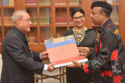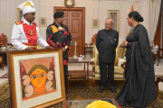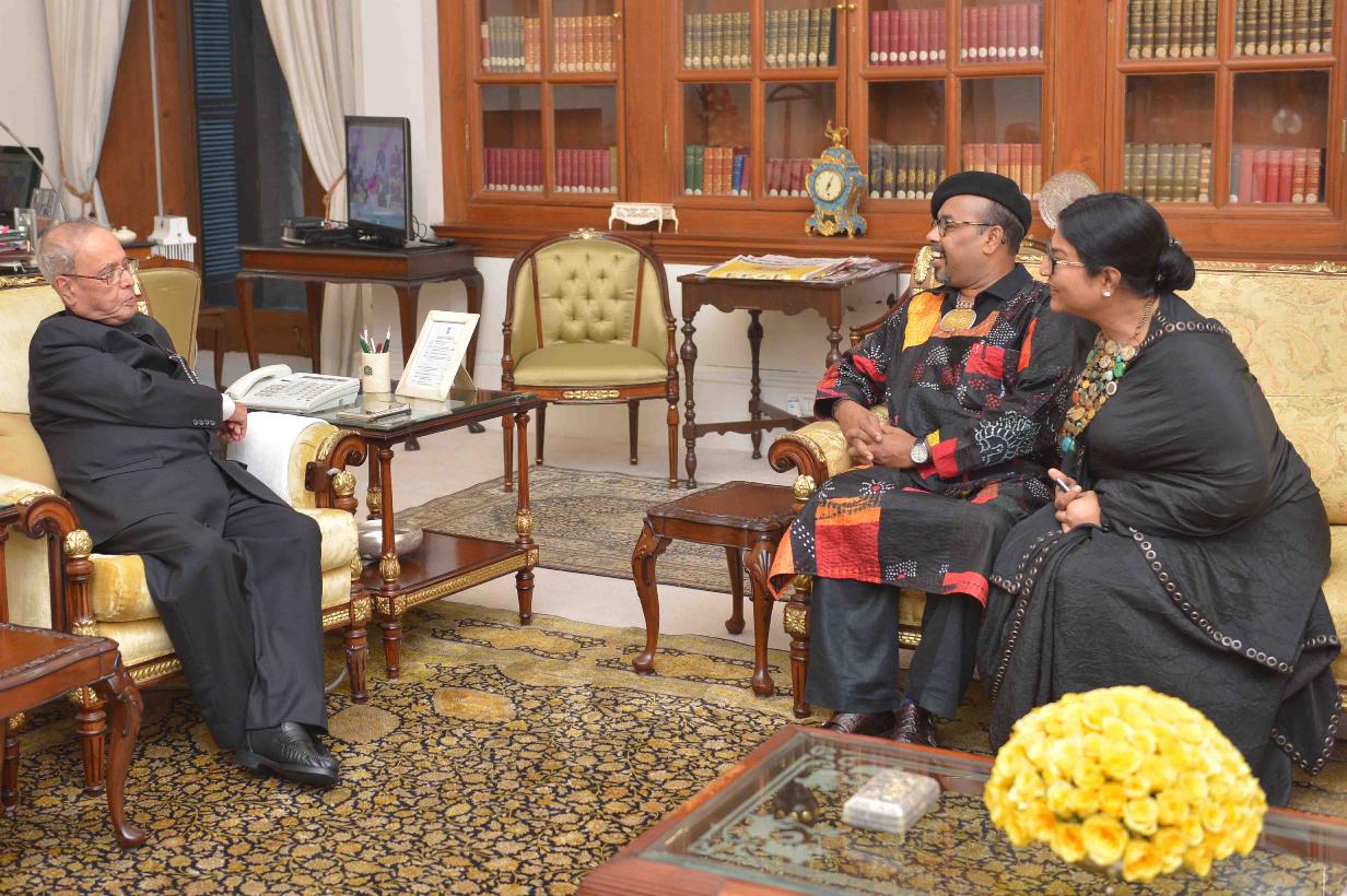 | Caption: | The President of India, Shri Pranab Mukherjee meeting with Shri Paresh Maity and Smt. Jayasri Burman, Artists In-Residence, at Rashtrapati Bhavan on October 01, 2016. |