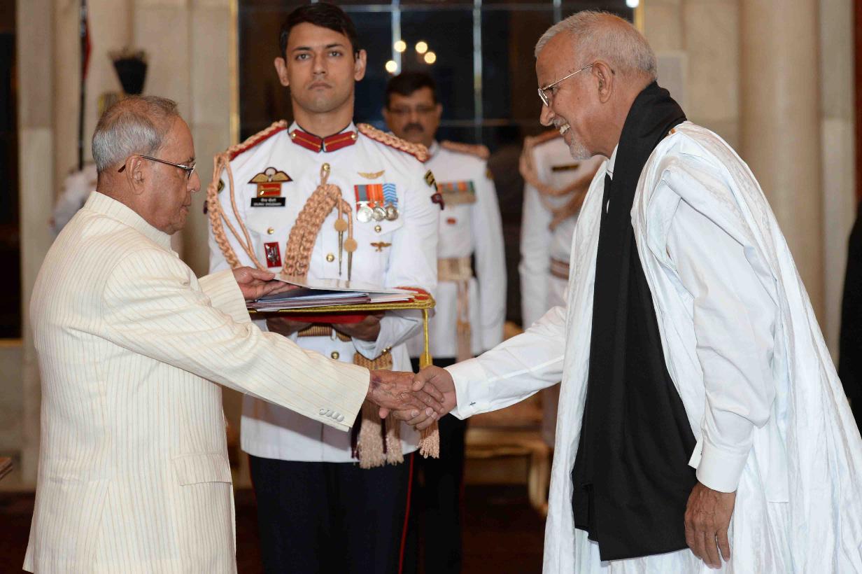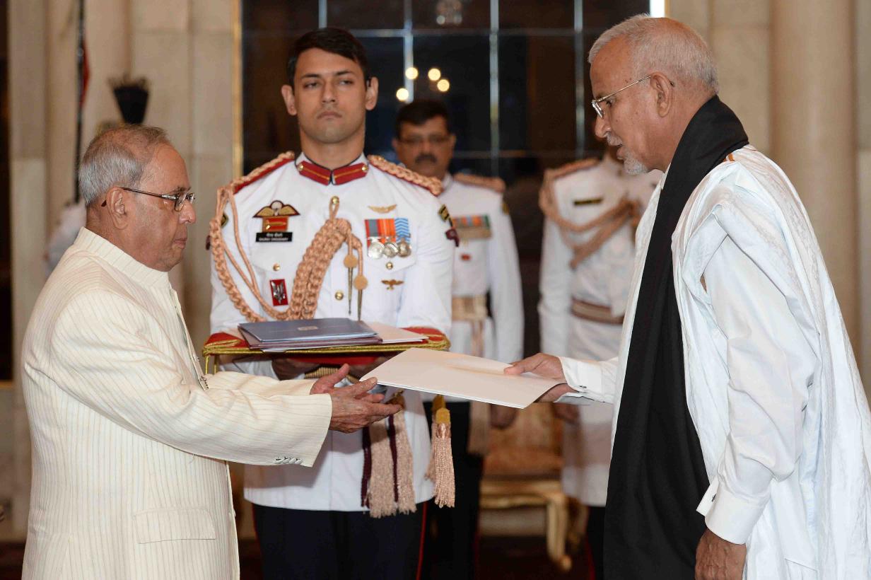 | Caption: | The Ambassador-designate of Mauritania, H.E. Mr. Sidi Mohamed Hanene presenting his credentials to the President of India, Shri Pranab Mukherjee, at Rashtrapati Bhavan on October 12, 2016. |