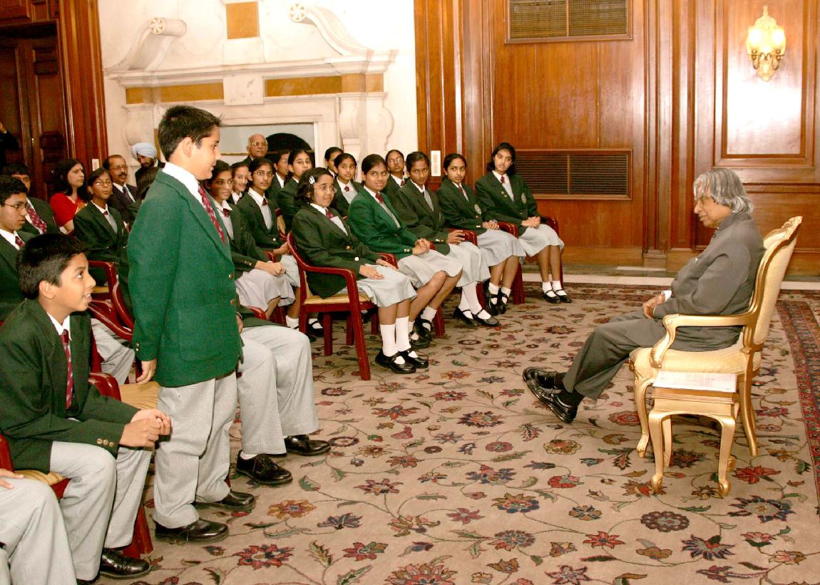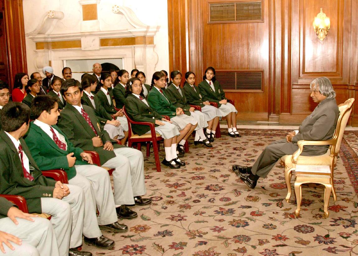 | Caption: | The Student from India School AI Ghubra Muscat calling on the President of India, Dr A P J Abdul Kalam at the Committee Room of Rashtrapati Bhavan in New Delhi on Dec 06, 2004 |