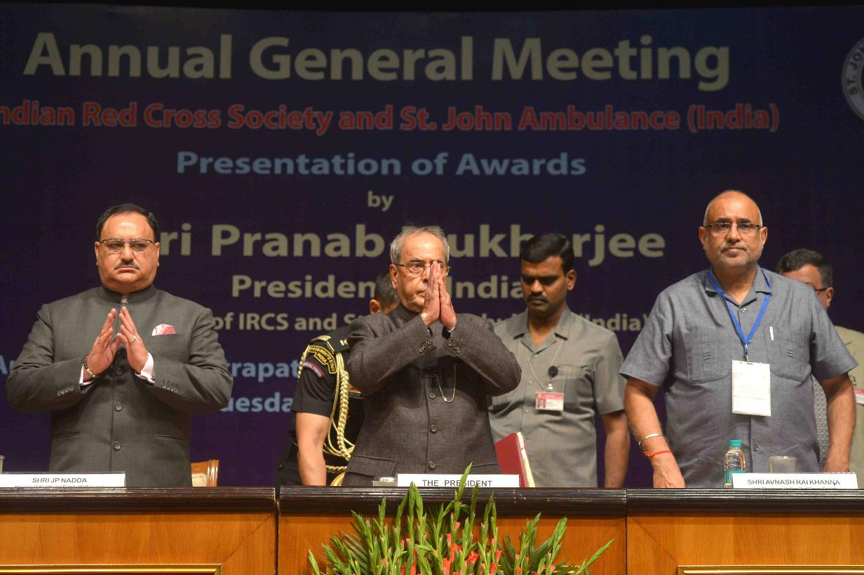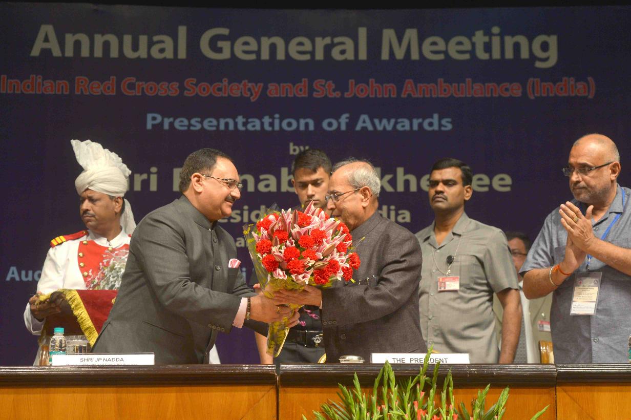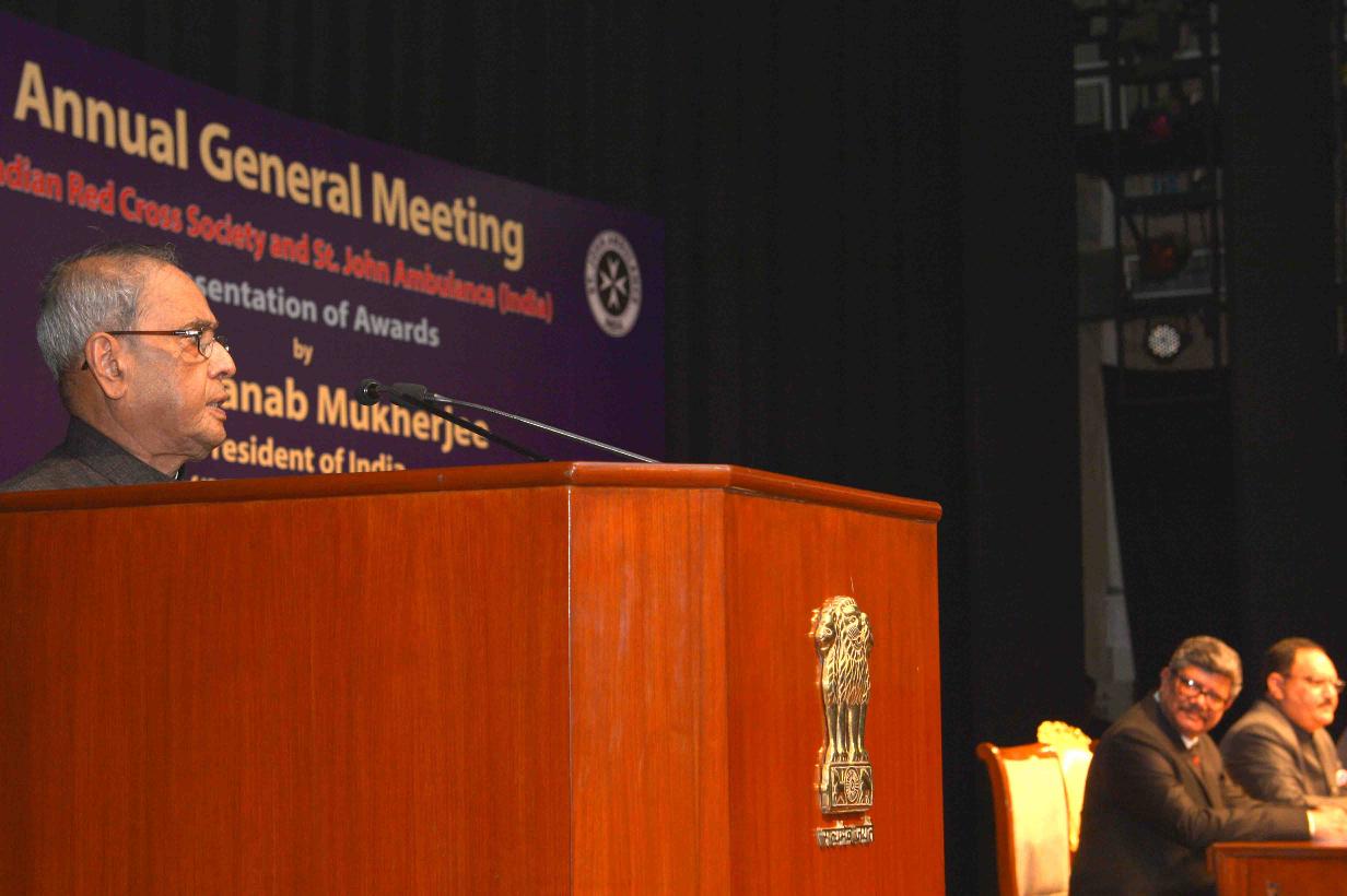 | Caption: | The President of India, Shri Pranab Mukherjee presiding over the Ceremonial Session of the Annual General Meeting of Indian Red Cross Society & St. John Ambulance (India), at Rashtrapati Bhavan Cultural Centre Auditorium on August 30, 2016. |