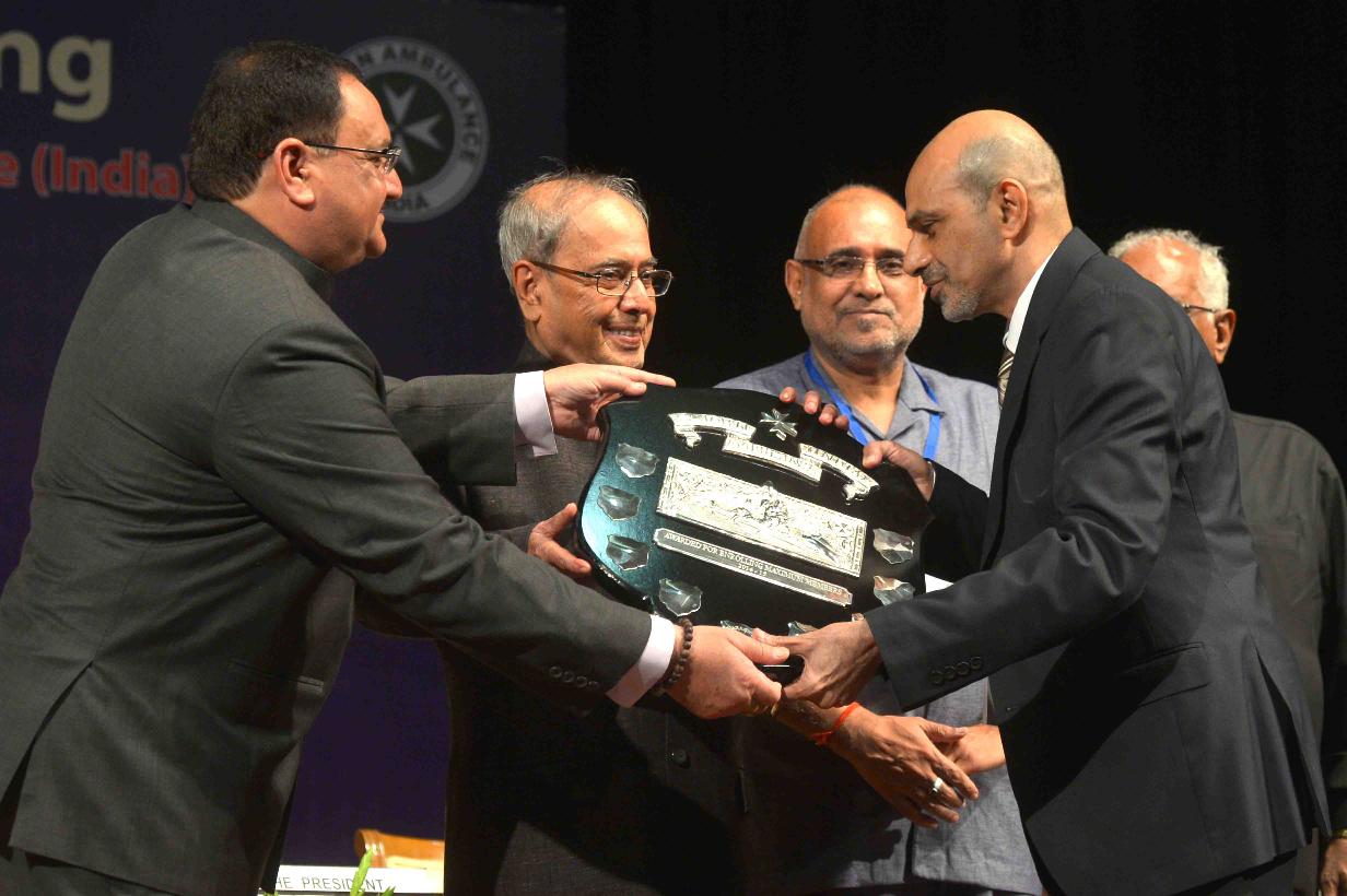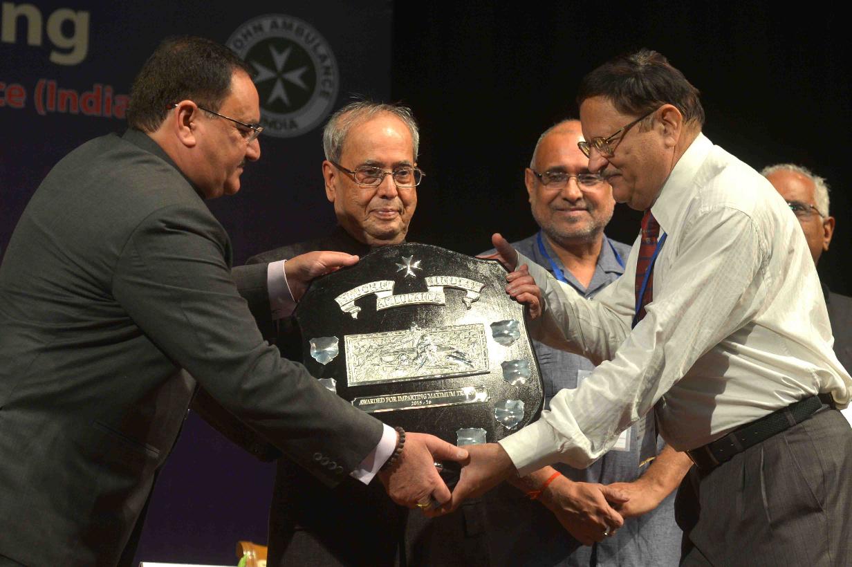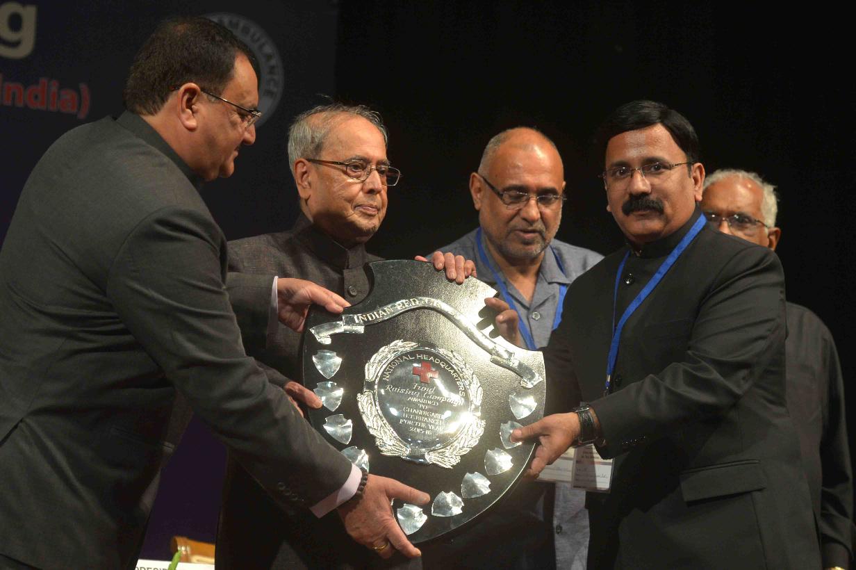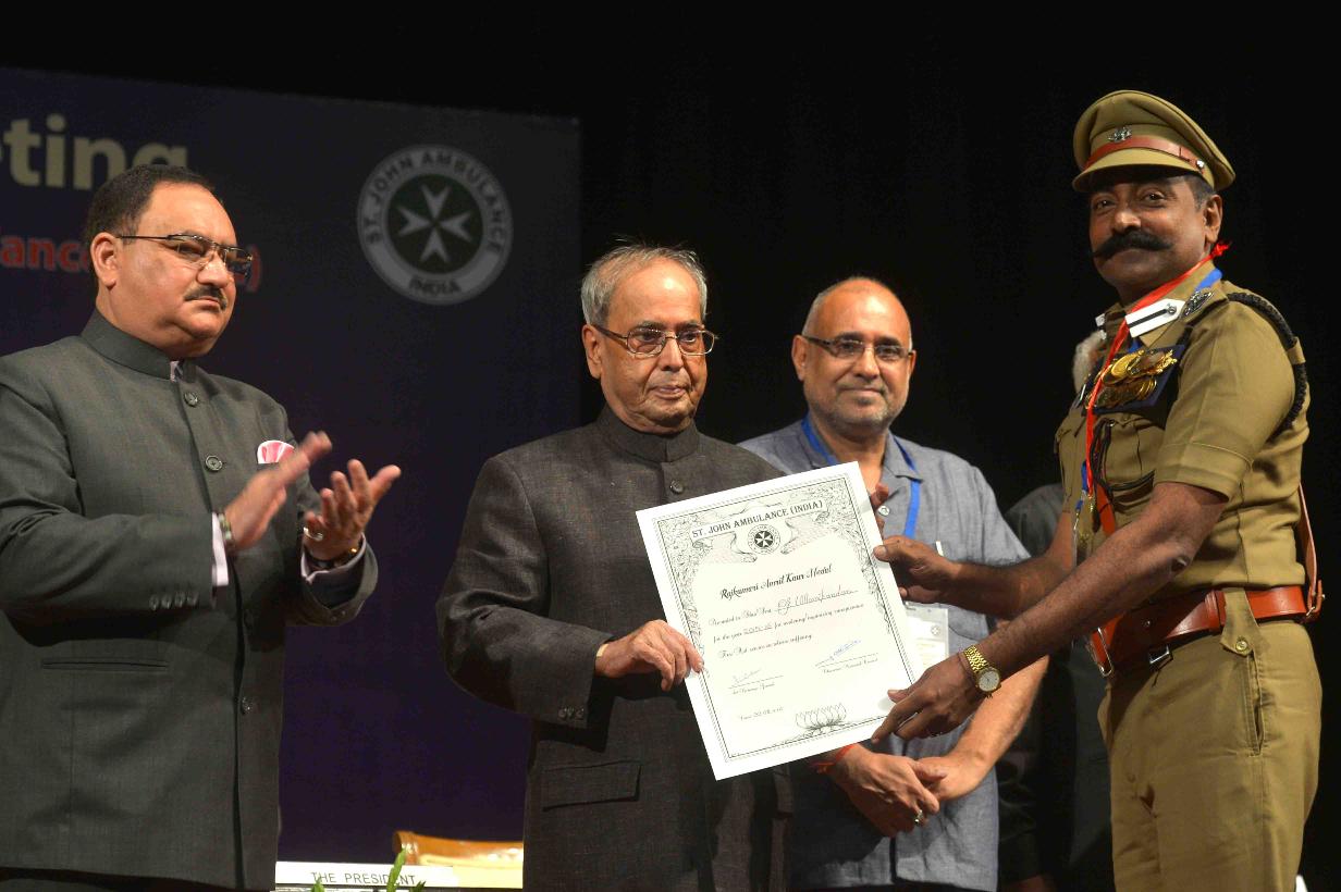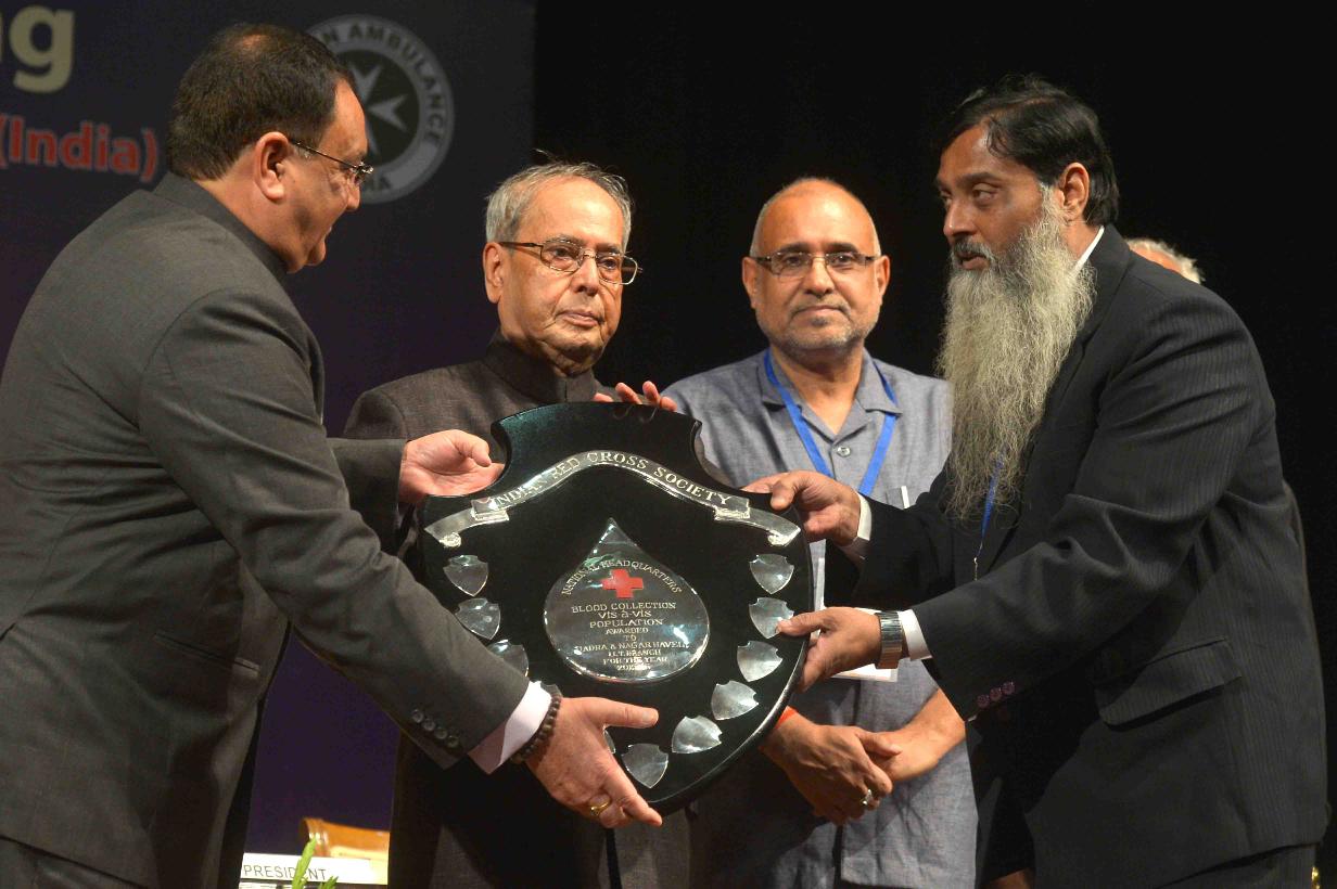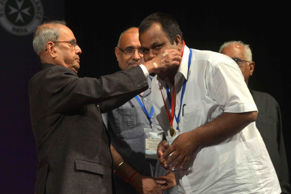 | Caption: | The President of India, Shri Pranab Mukherjee presenting the awards to the best performing branches & distinguished Red Cross/St. John Volunteers/ Workers, at the Ceremonial Session of the Annual General Meeting of Indian Red Cross Society & St. John Ambulance (India), at Rashtrapati Bhavan Cultural Centre Auditorium on August 30, 2016. |