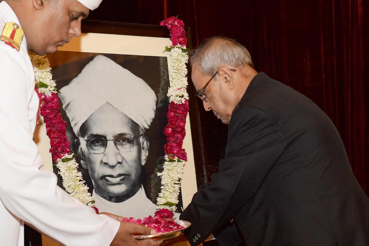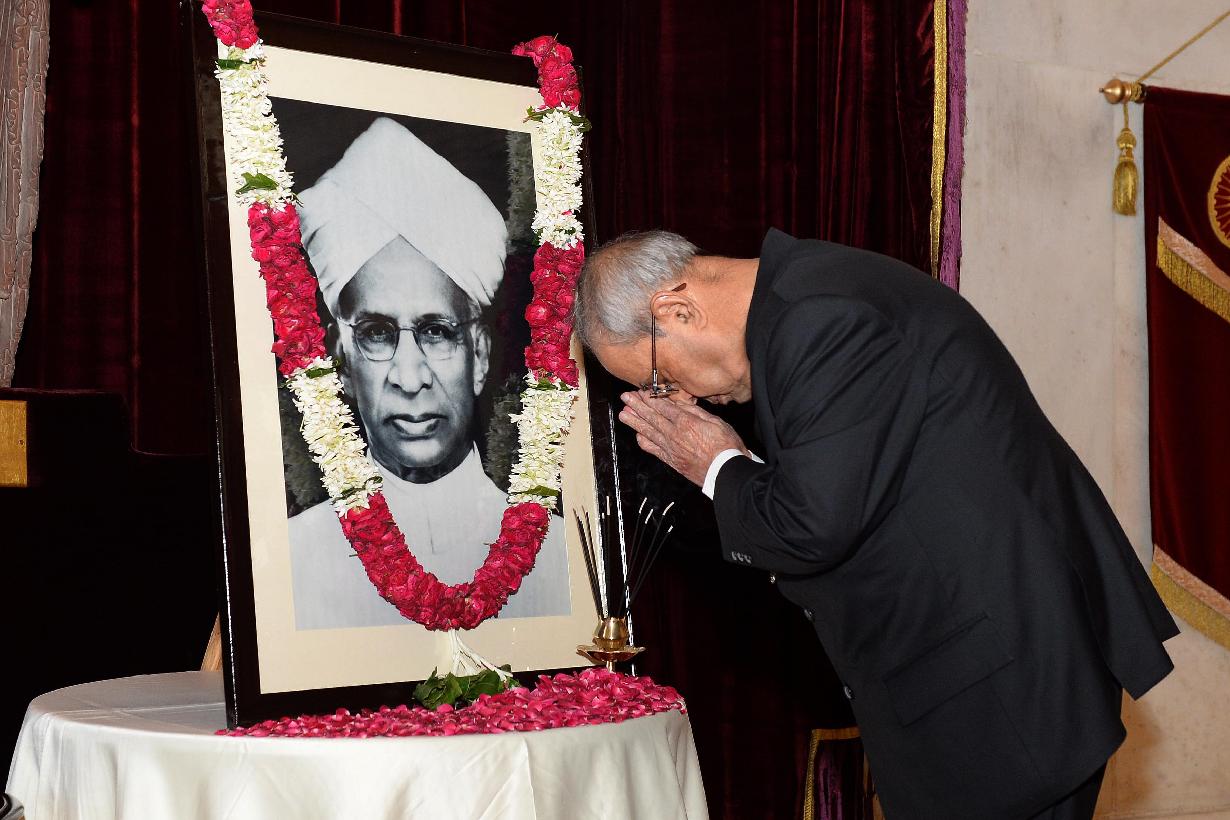 | Caption: | The President of India, Shri Pranab Mukherjee paying floral tributes at the portrait of Dr. Sarvepalli Radhakrishnan, former President of India on his Birth Anniversary, at Rashtrapati Bhavan on September 05, 2016. |