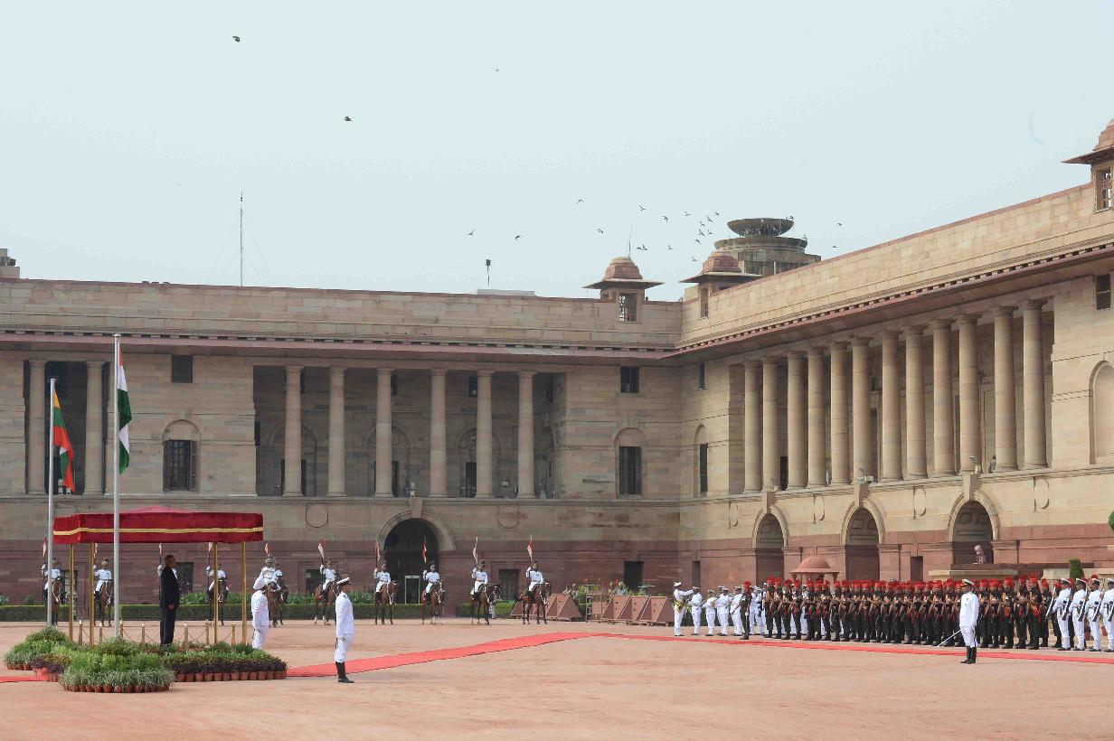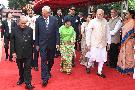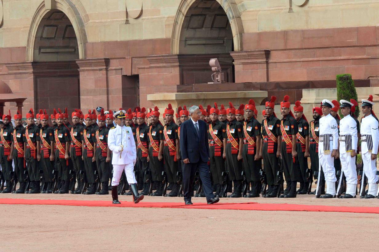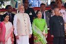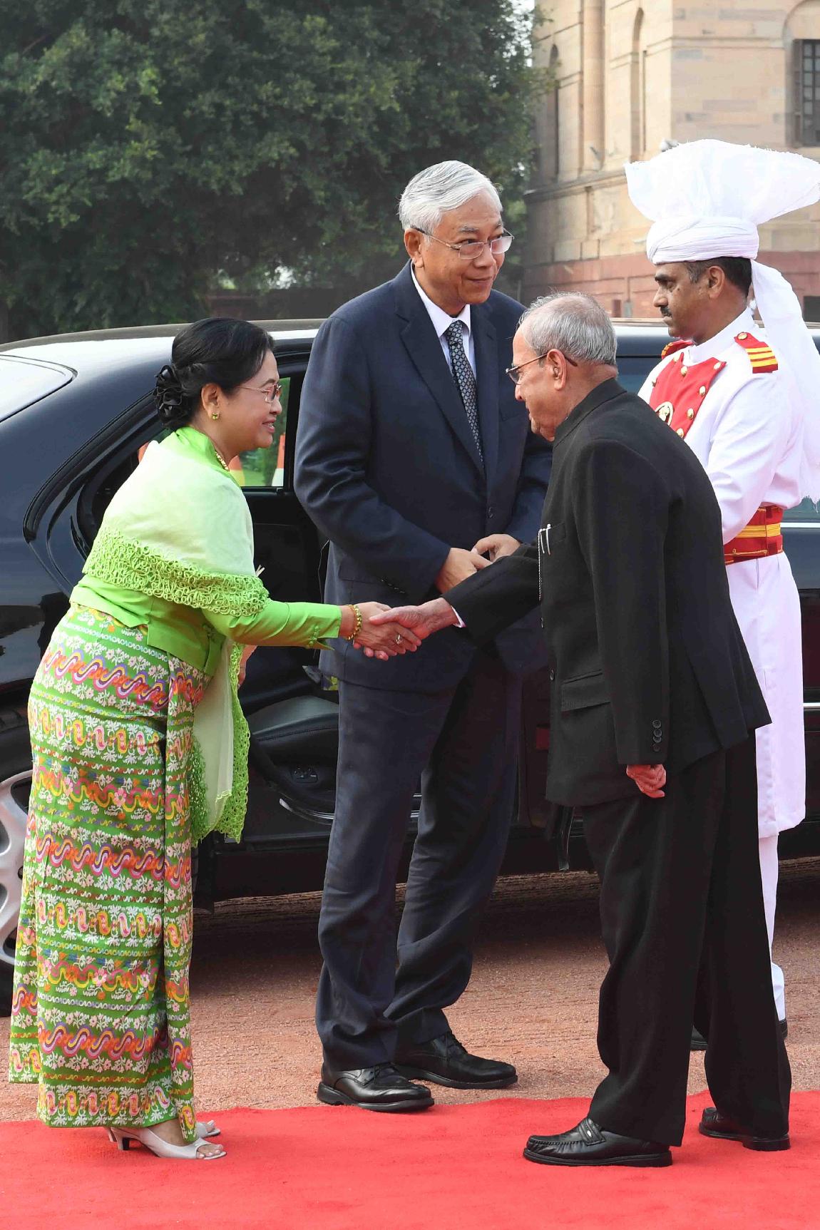 | Caption: | The President of India, Shri Pranab Mukherjee receiving the President of Republic of the Union of Myanmar, H.E. U. Htin Kyaw and Daw Su Su Lwin during Ceremonial Reception, at the forecourt of Rashtrapati Bhavan on August 29, 2016. |