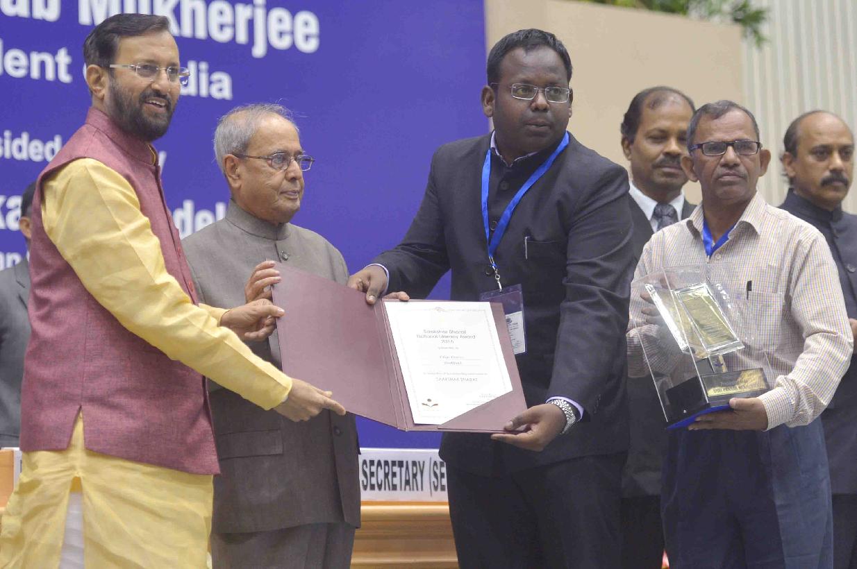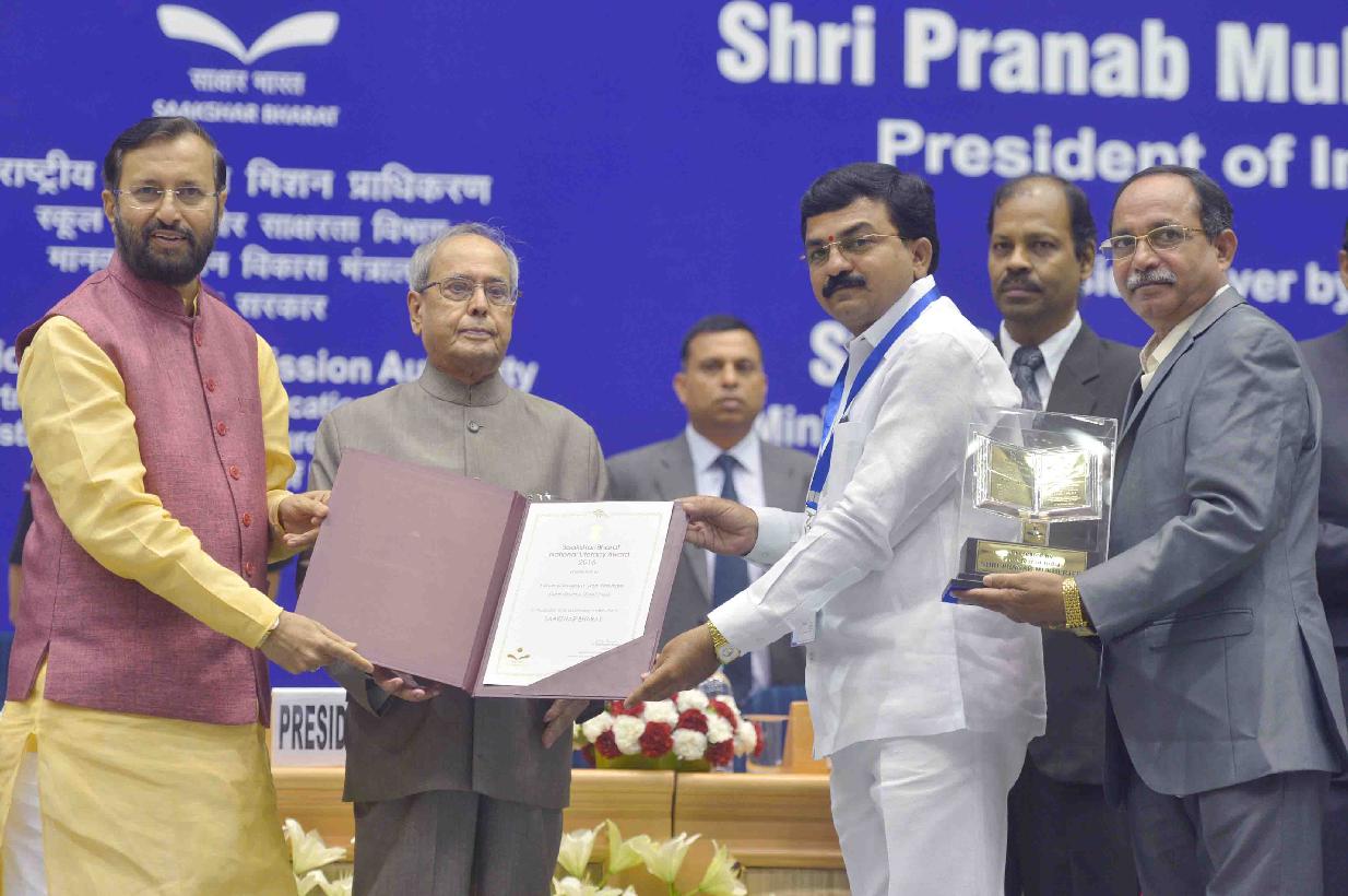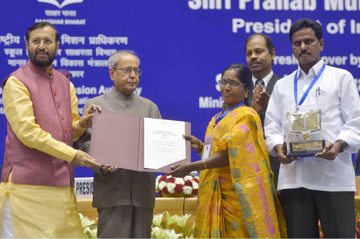 | Caption: | The President of India, Shri Pranab Mukherjee presenting the Saakshar Bharat National Literacy Awards 2016 at the International Literacy Day function, in New Delhi on September 08, 2016. |
