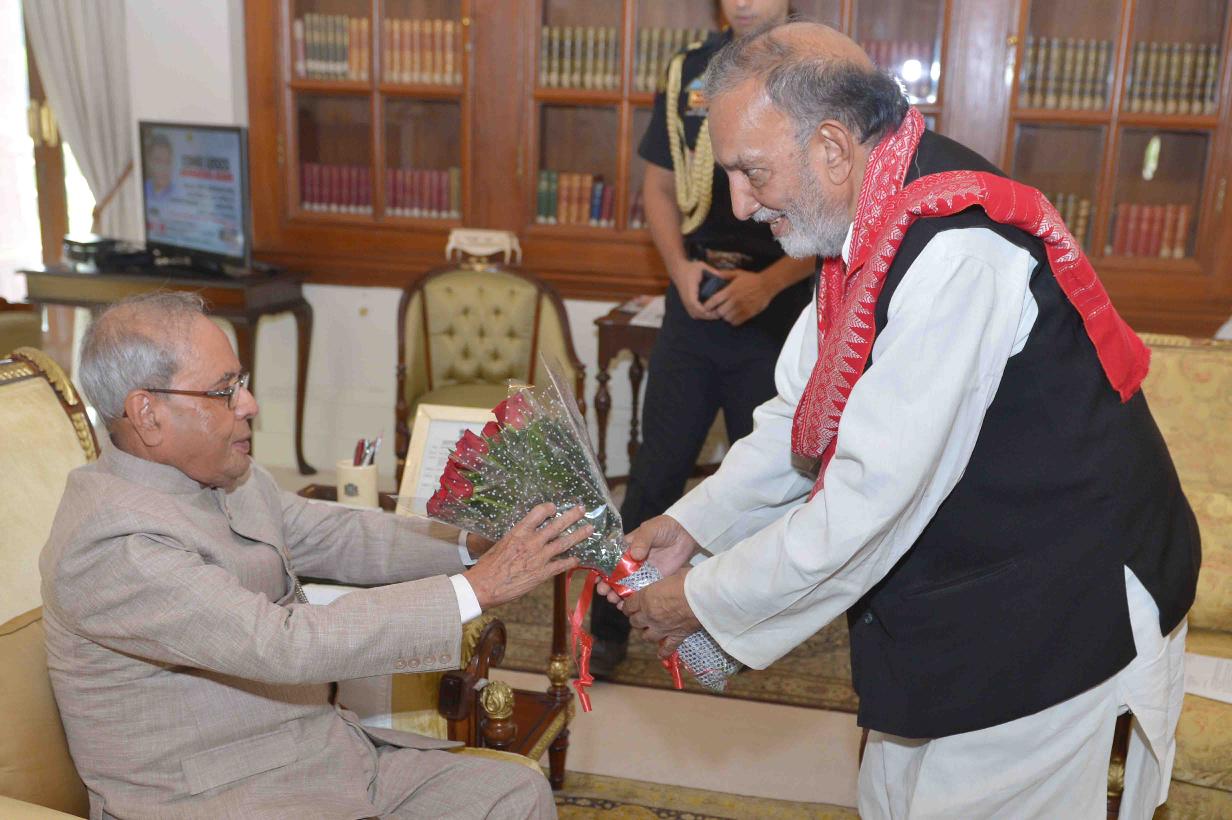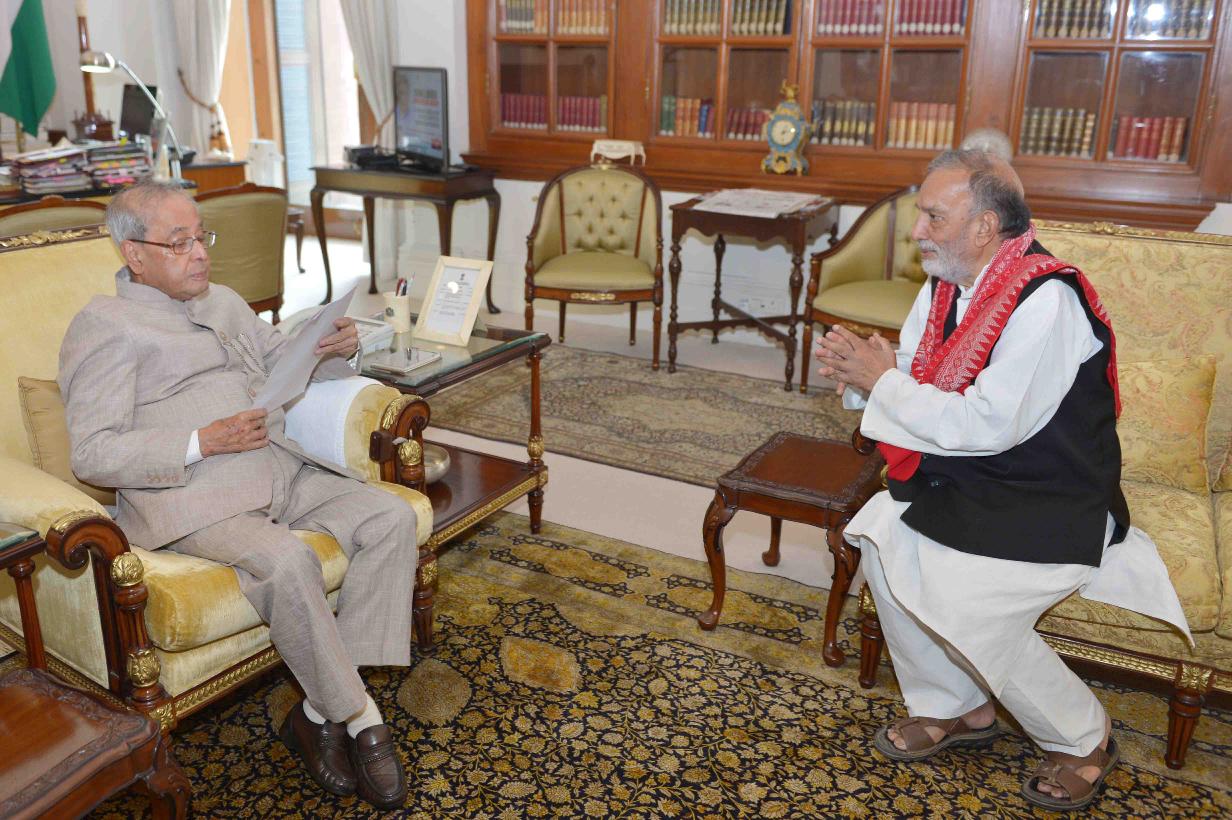 | Caption: | The President of India, Shri Pranab Mukherjee meeting with Prof. Bhim Singh, Chief Patron, National Panthers Party & Member, National Integration Council, at Rashtrapati Bhavan on September 16, 2016. |