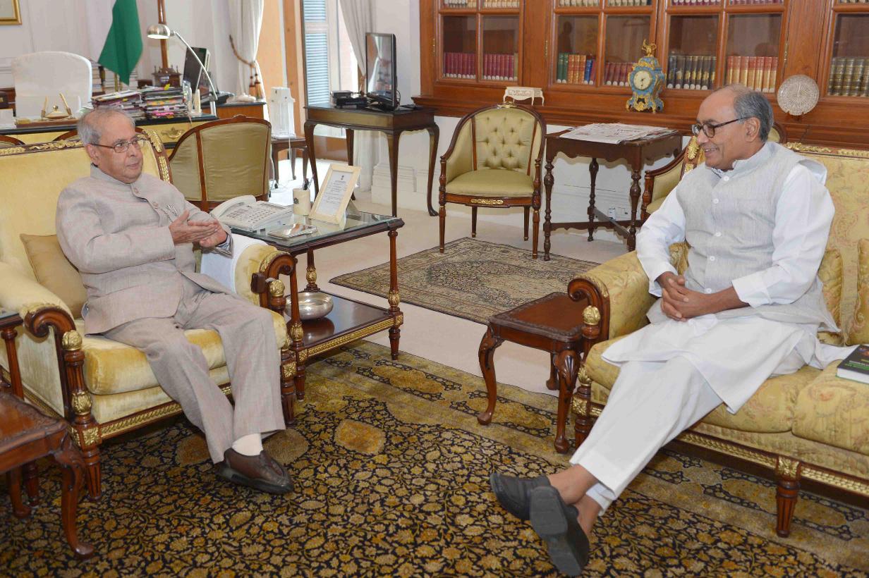 | Caption: | The President of India, Shri Pranab Mukherjee meeting with Shri Digvijay Singh, MP (RS), at Rashtrapati Bhavan on September 16, 2016. |