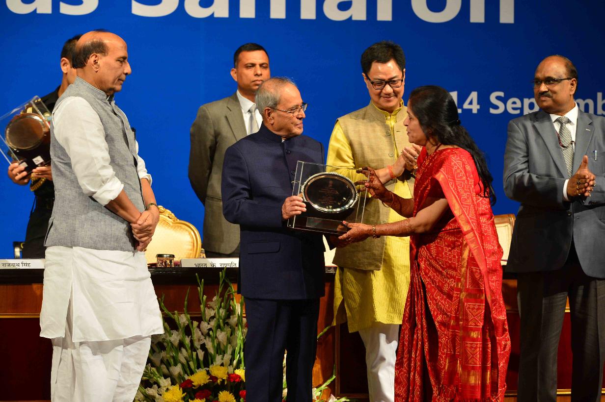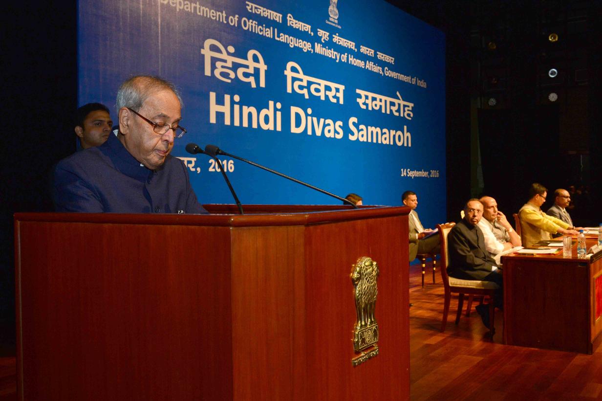| Caption: | The President of India, Shri Pranab Mukherjee attending Hindi Divas Samaroh and presenting the Rajbhasha award instituted by the Rajbhasha Vibhag of Ministry of Home Affairs, at Rashtrapati Bhavan Cultural Centre Auditorium on September 14, 2016. |