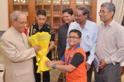 | Caption: | The President of India, Shri Pranab Mukherjee meeting with Shri Dulal Chandra Kar, Ex-Headmaster Ghatal Vidyasagar High School with others from Ghatal, Paschim Medinipur, at Rashtrapati Bhavan on September 24, 2016. |