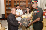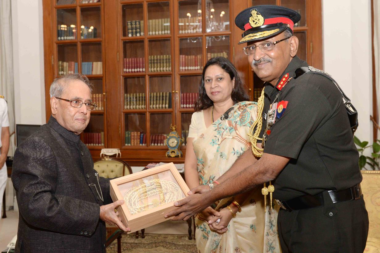 | Caption: | The President of India, Shri Pranab Mukherjee meeting with Lt. Gen. P.R. Shankar, Director General, Artillery & Hony ADC to the President alongwith his wife Smt. Lalitha Shankar, at Rashtrapati Bhavan on October 13, 2016. |