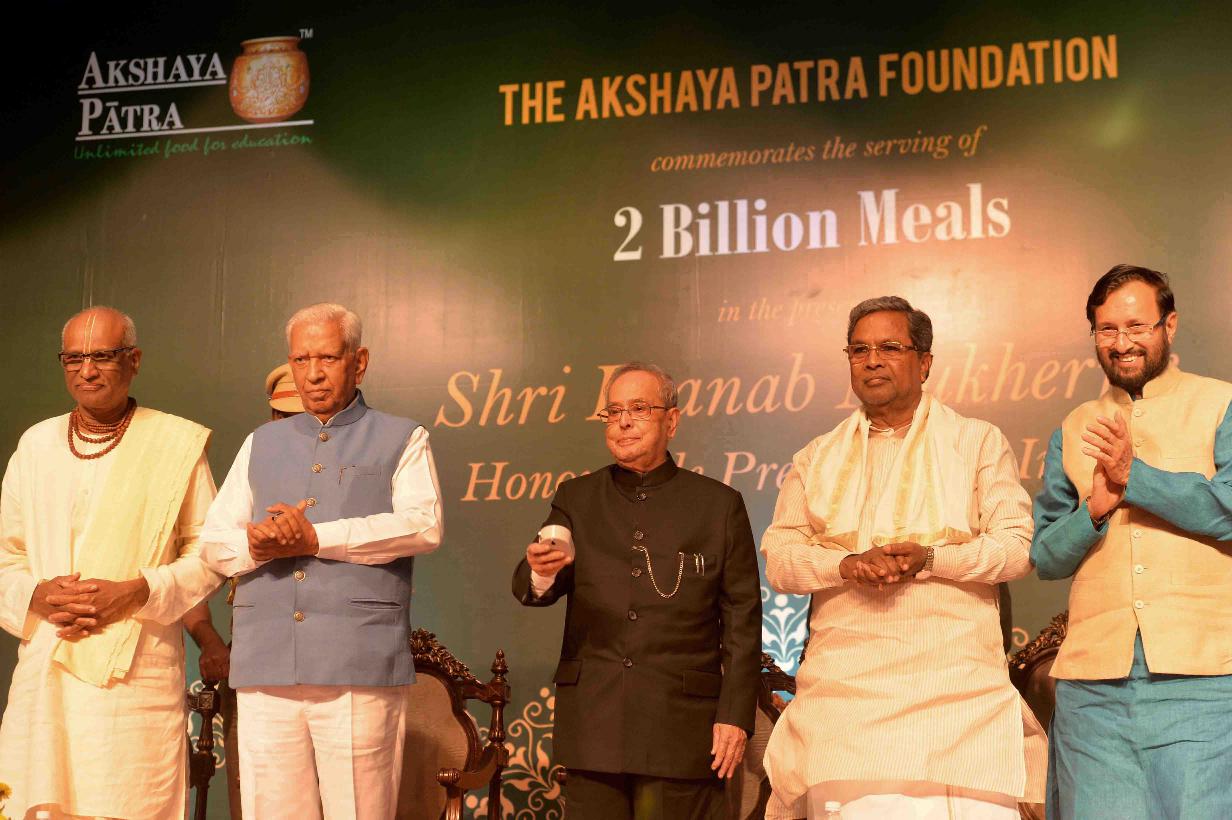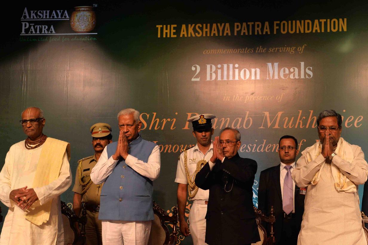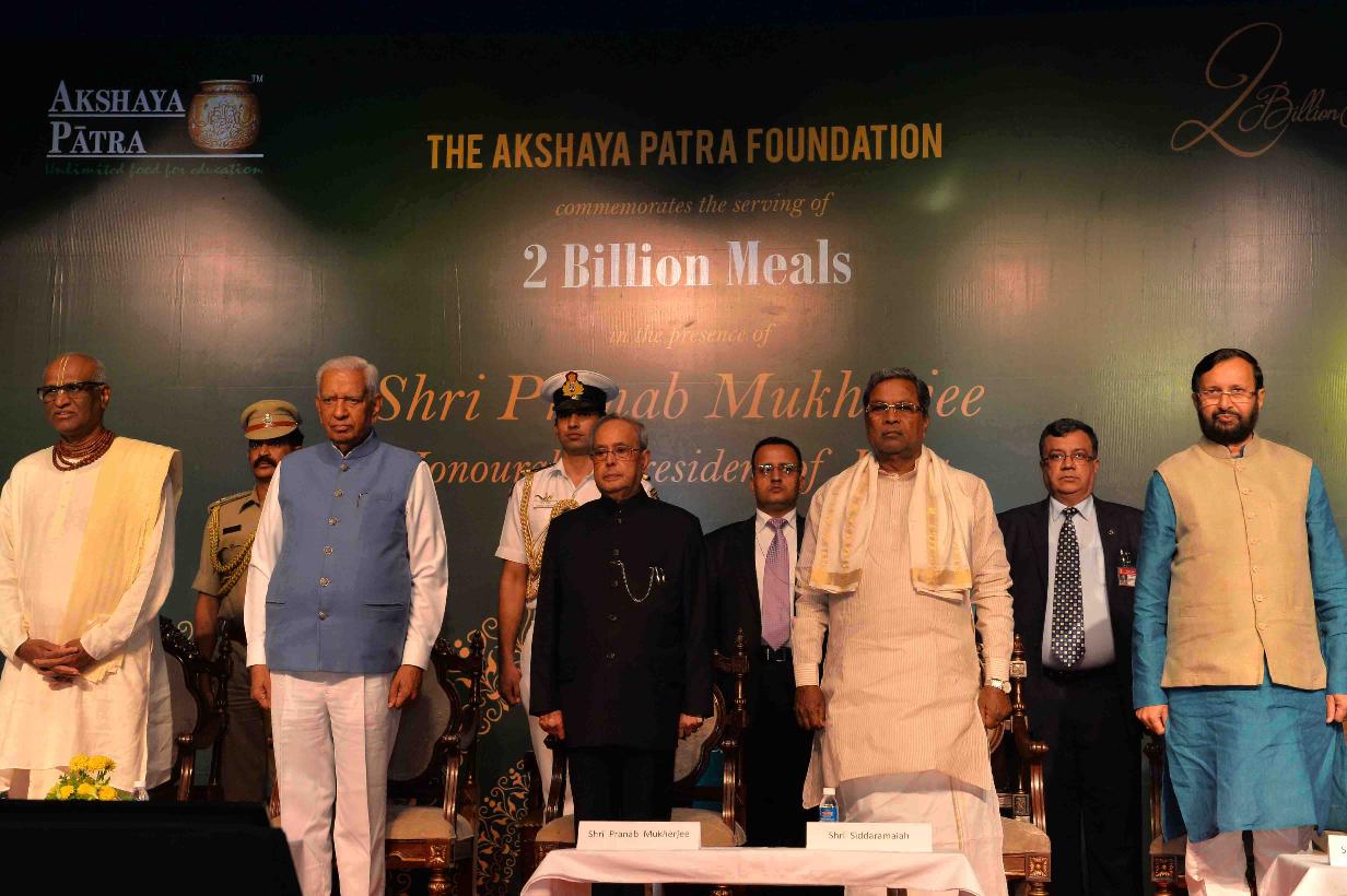 | Caption: | The President of India, Shri Pranab Mukherjee gracing the function to commemorate the serving of 2 billion meals of the Akshaya Patra Foundation, at Bangalore, in Karnataka on August 27, 2016. |