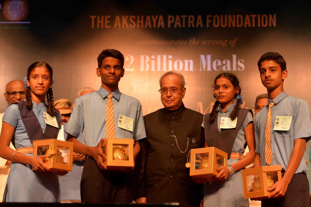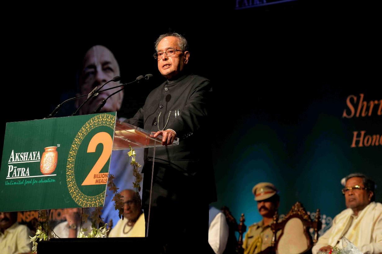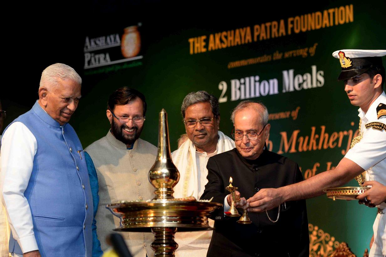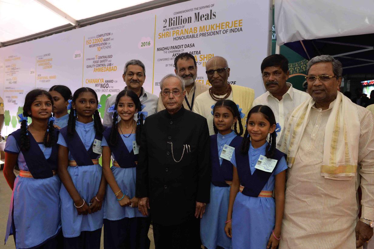 | Caption: | The President of India, Shri Pranab Mukherjee gracing the function to commemorate the serving of 2 billion meals of the Akshaya Patra Foundation, at Bangalore, in Karnataka on August 27, 2016. |