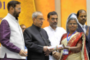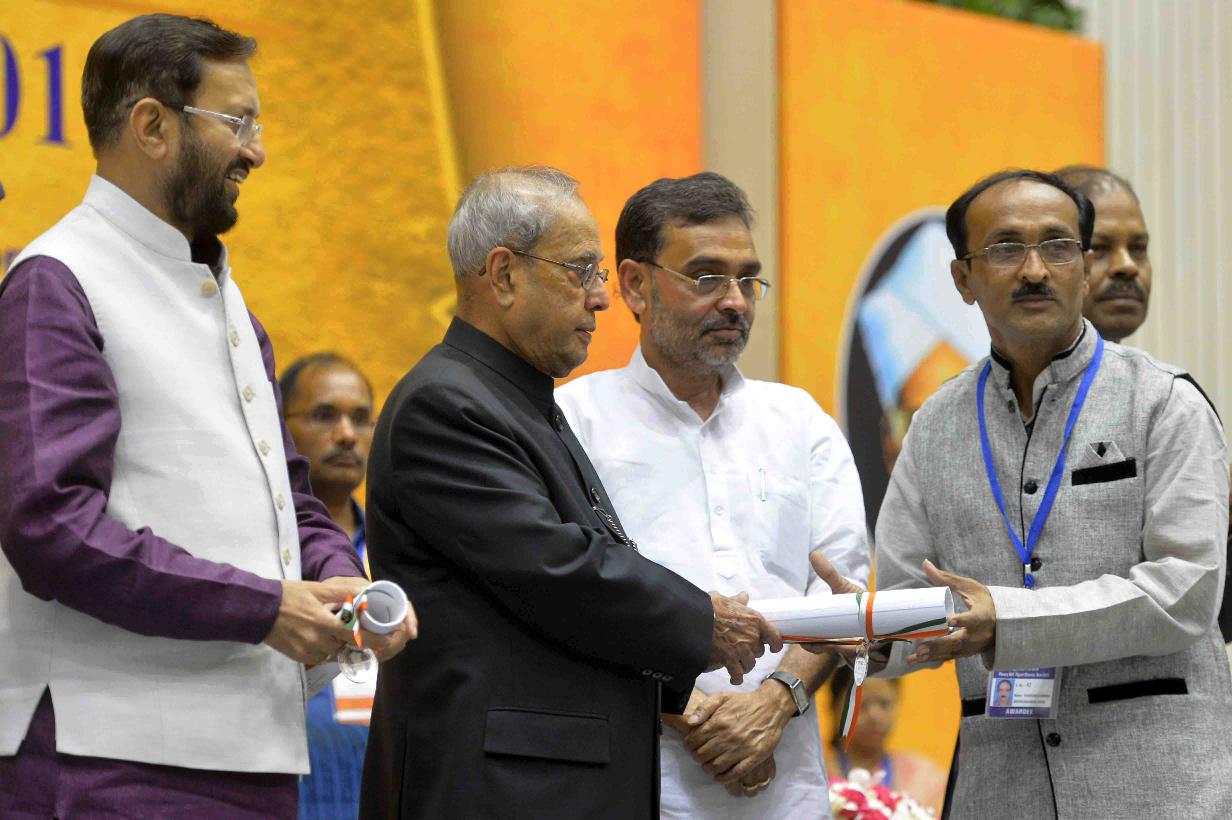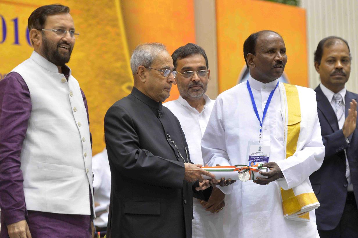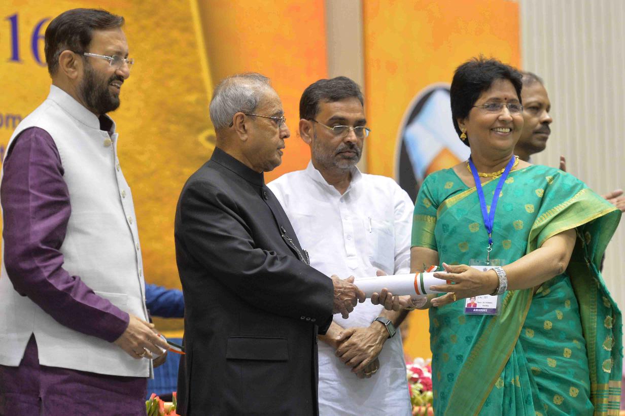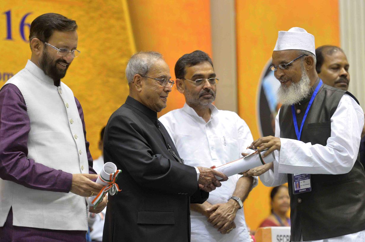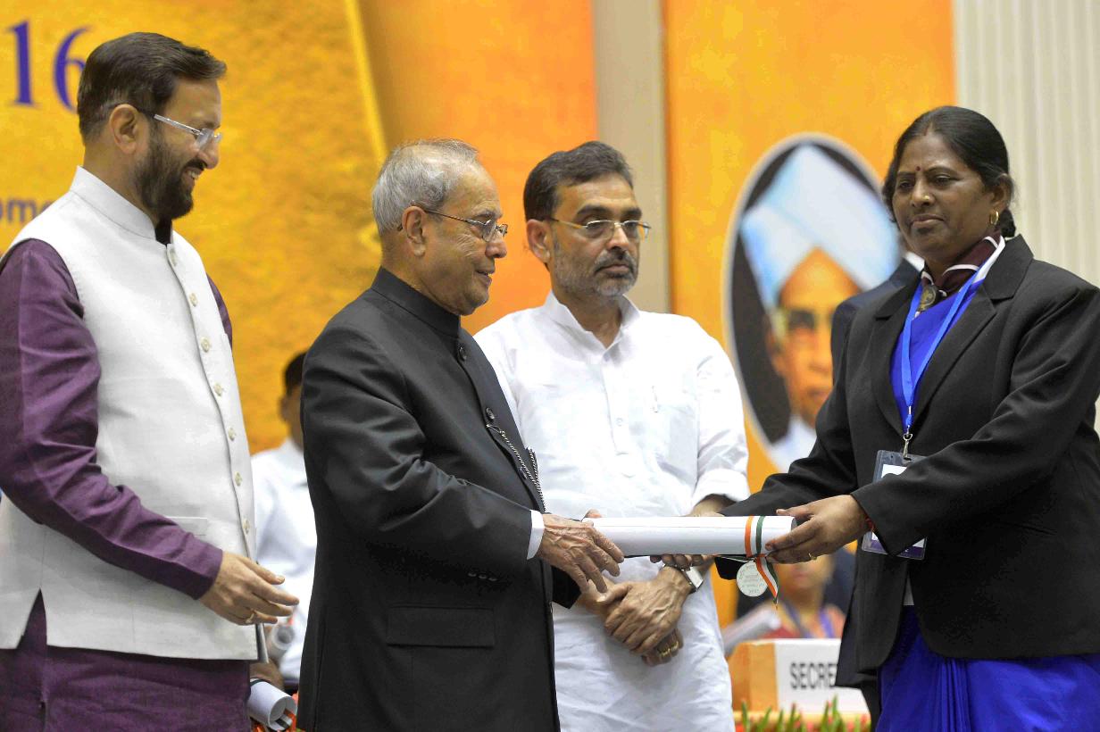 | Caption: | The President of India, Shri Pranab Mukherjee presenting the National Awards to meritorious teachers on the occasion of Teachers' Day, at Vigyan Bhavan, in New Delhi on September 05, 2016. |