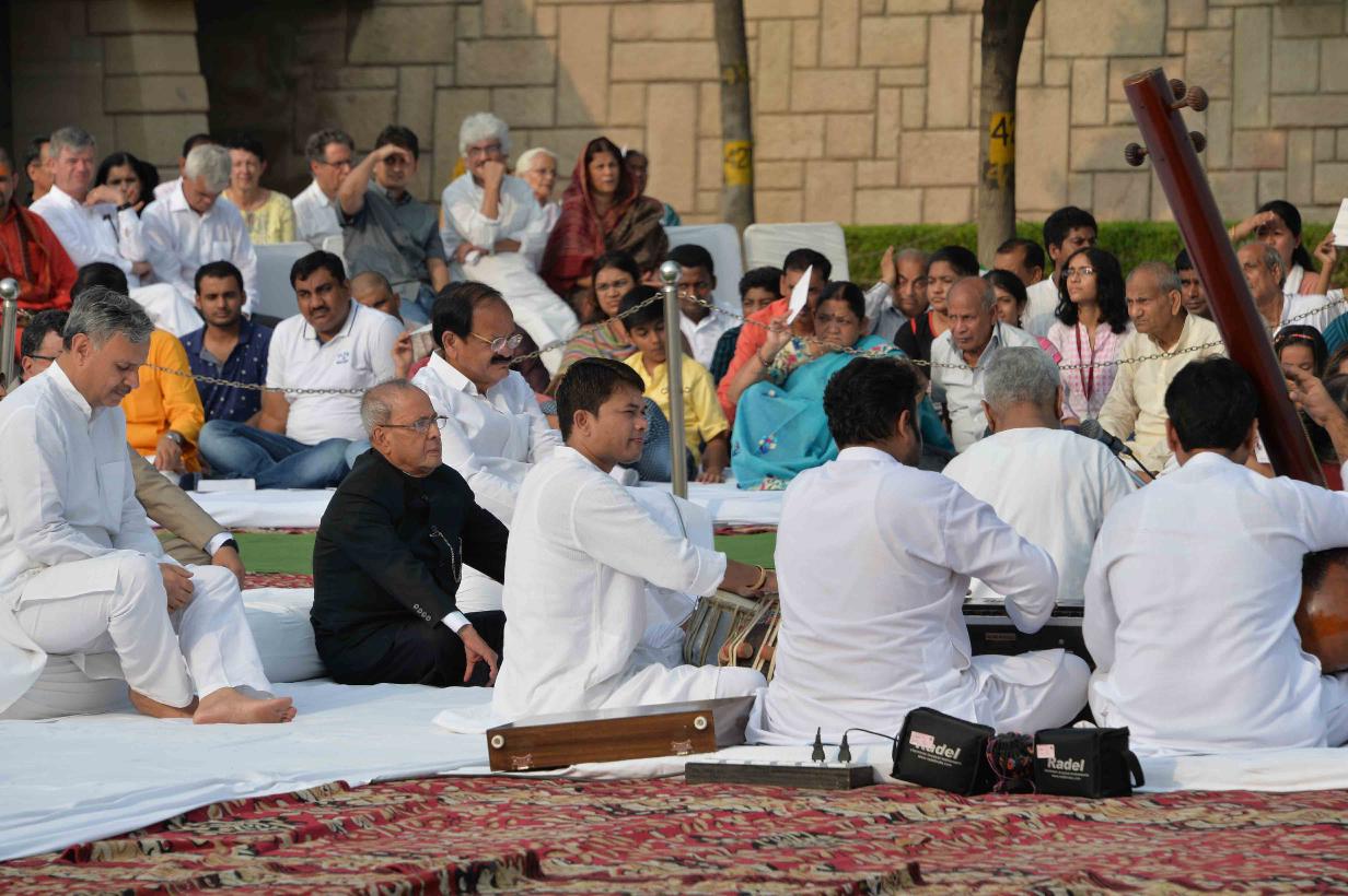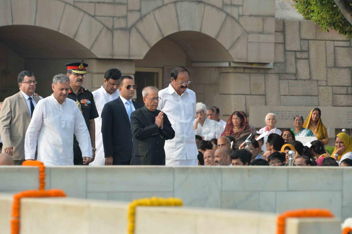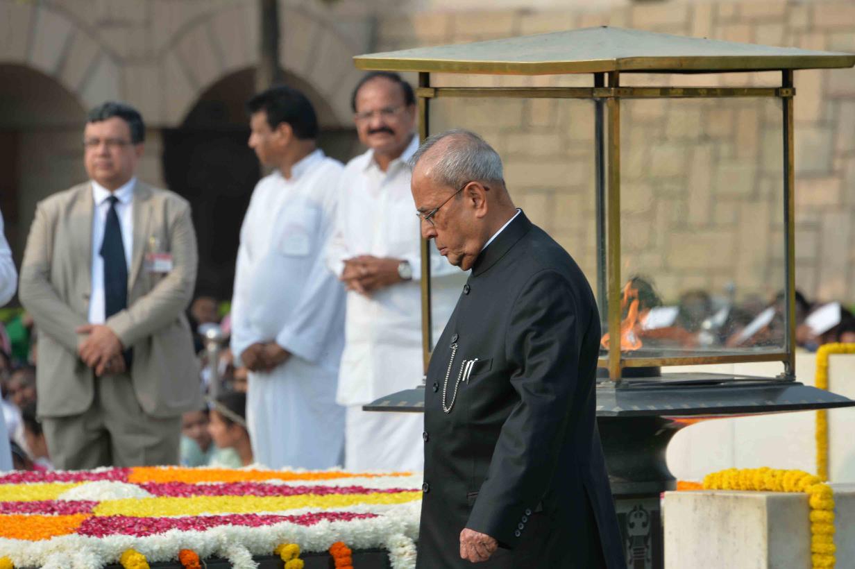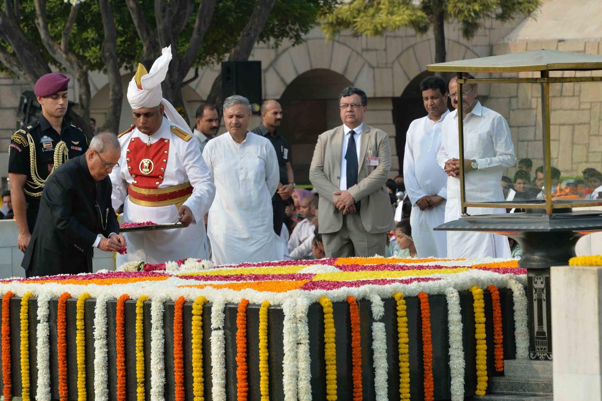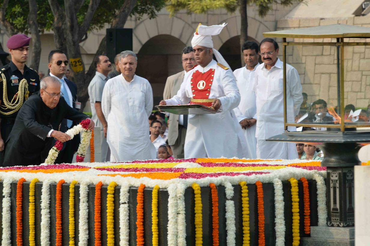 | Caption: | The President of India, Shri Pranab Mukherjee paying floral tributes at the Samadhi of Mahatma Gandhi on the occasion of his 147th Birth Anniversary, at Rajghat, in Delhi on October 02, 2016. |