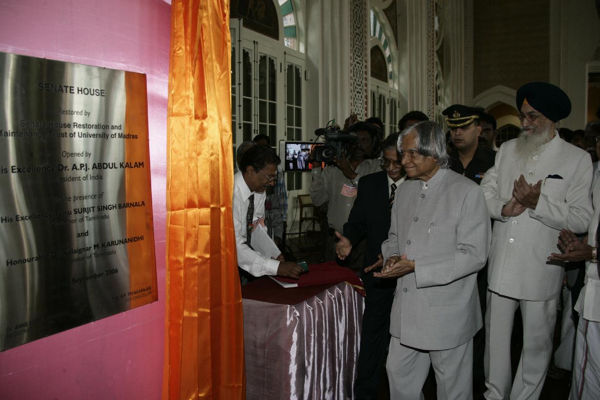 | Caption: | The President of India, Dr A P J Abdul Kalam inaugurating the Senate House at the inauguration of 150th Year Celebrations of the University of Madras at Chennai in Tamil Nadu on Sep 04, 2006 |