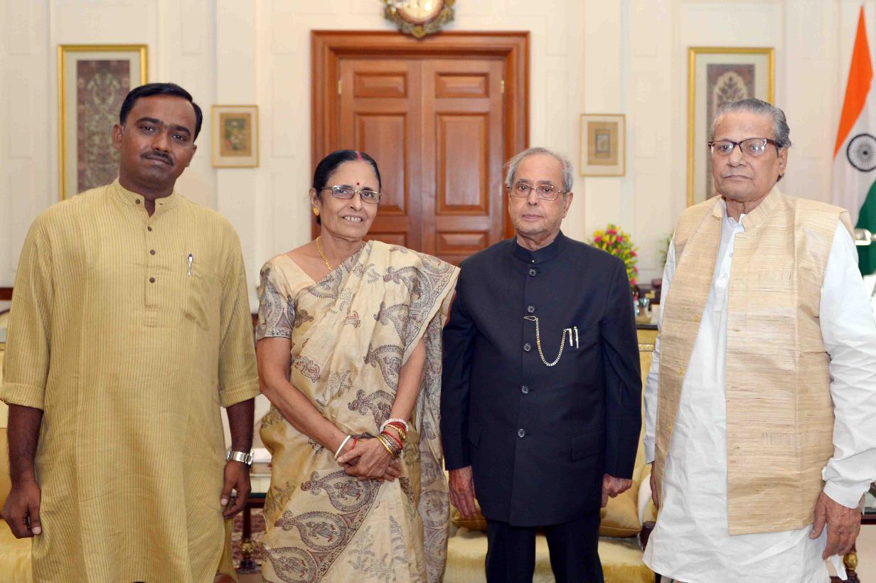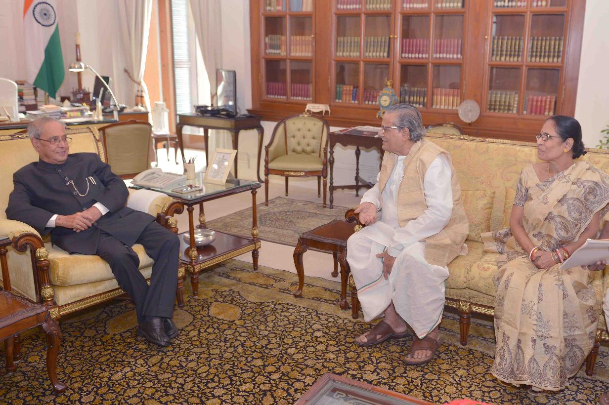 | Caption: | The President of India, Shri Pranab Mukherjee meeting with Shri Narayan Basu, Chairman alongwith Shri Pratip Guha, Director, Gandhi Smarak Sangrahalaya, Barrackpore, North 24 Parganas and Smt. Rekha Basu, at Rashtrapati Bhavan on September 26, 2016. |
