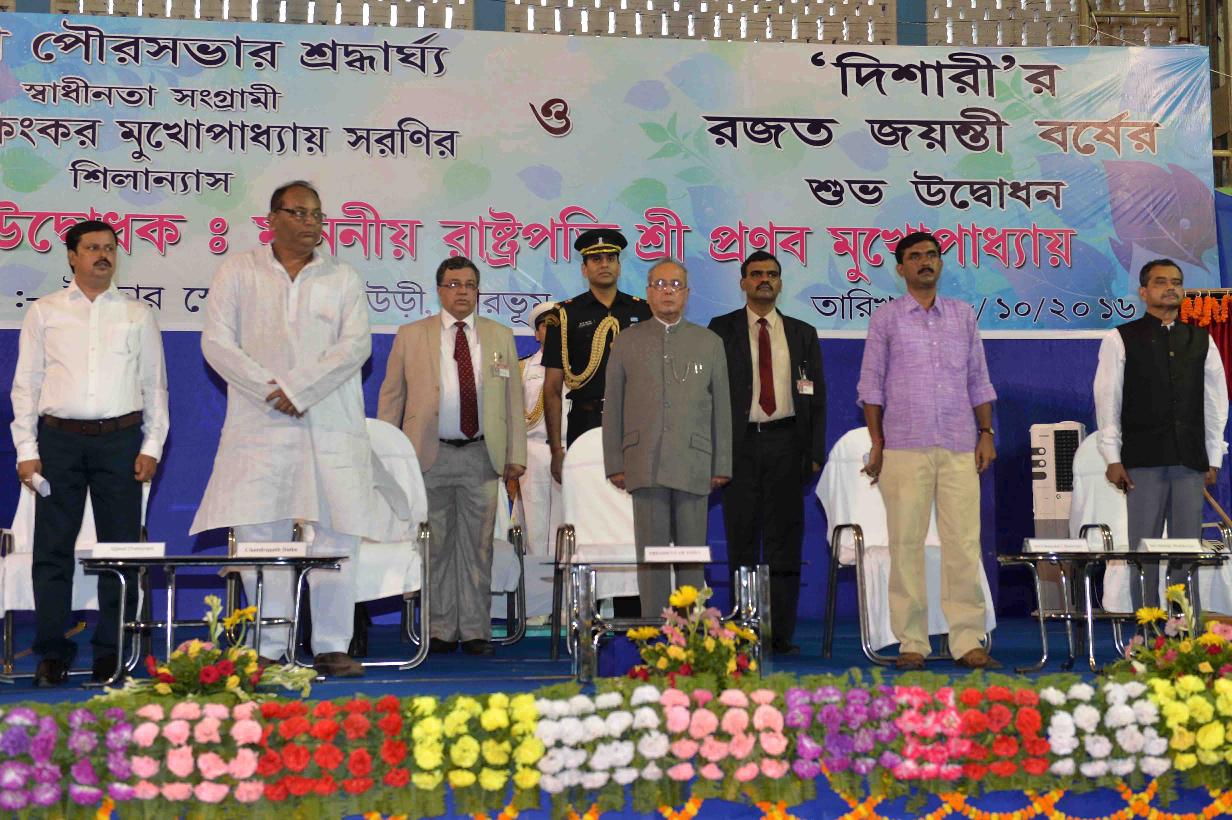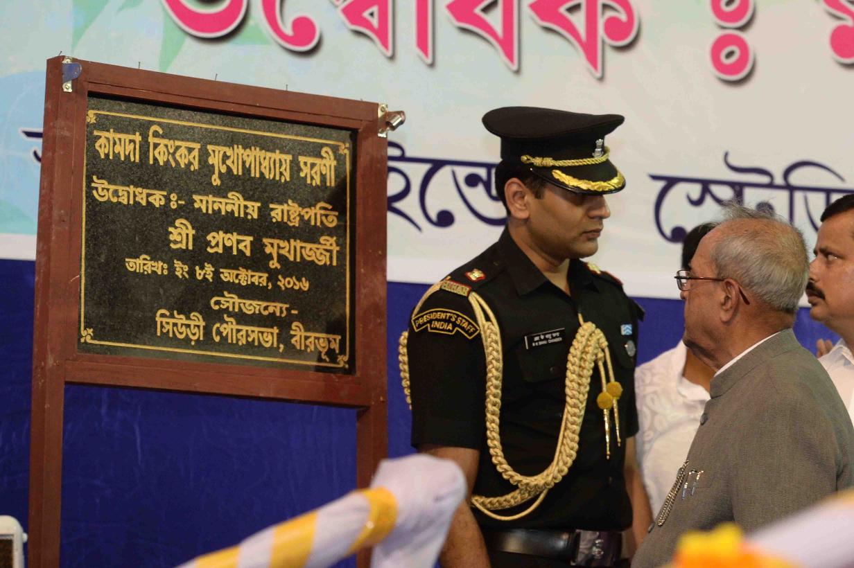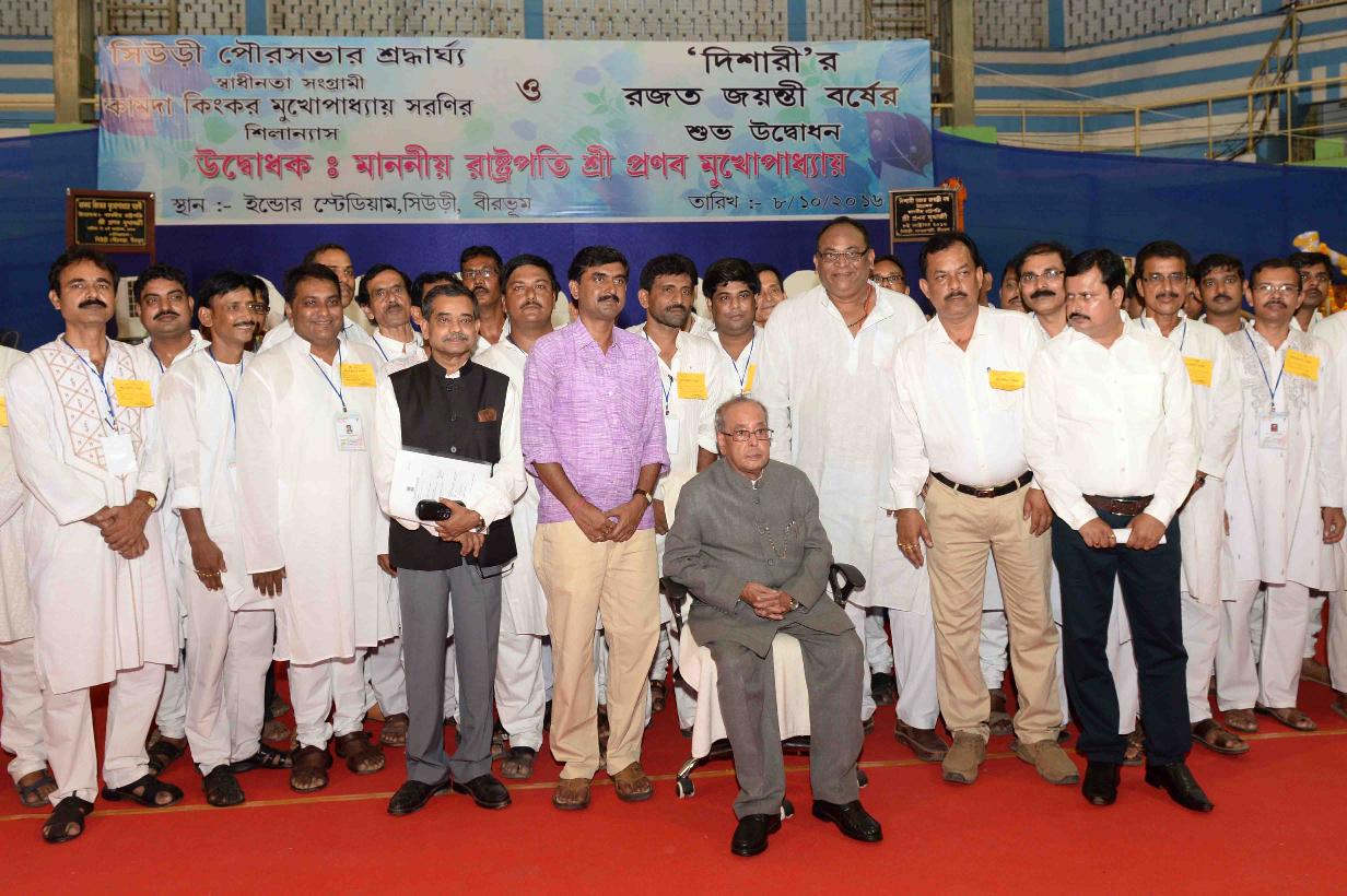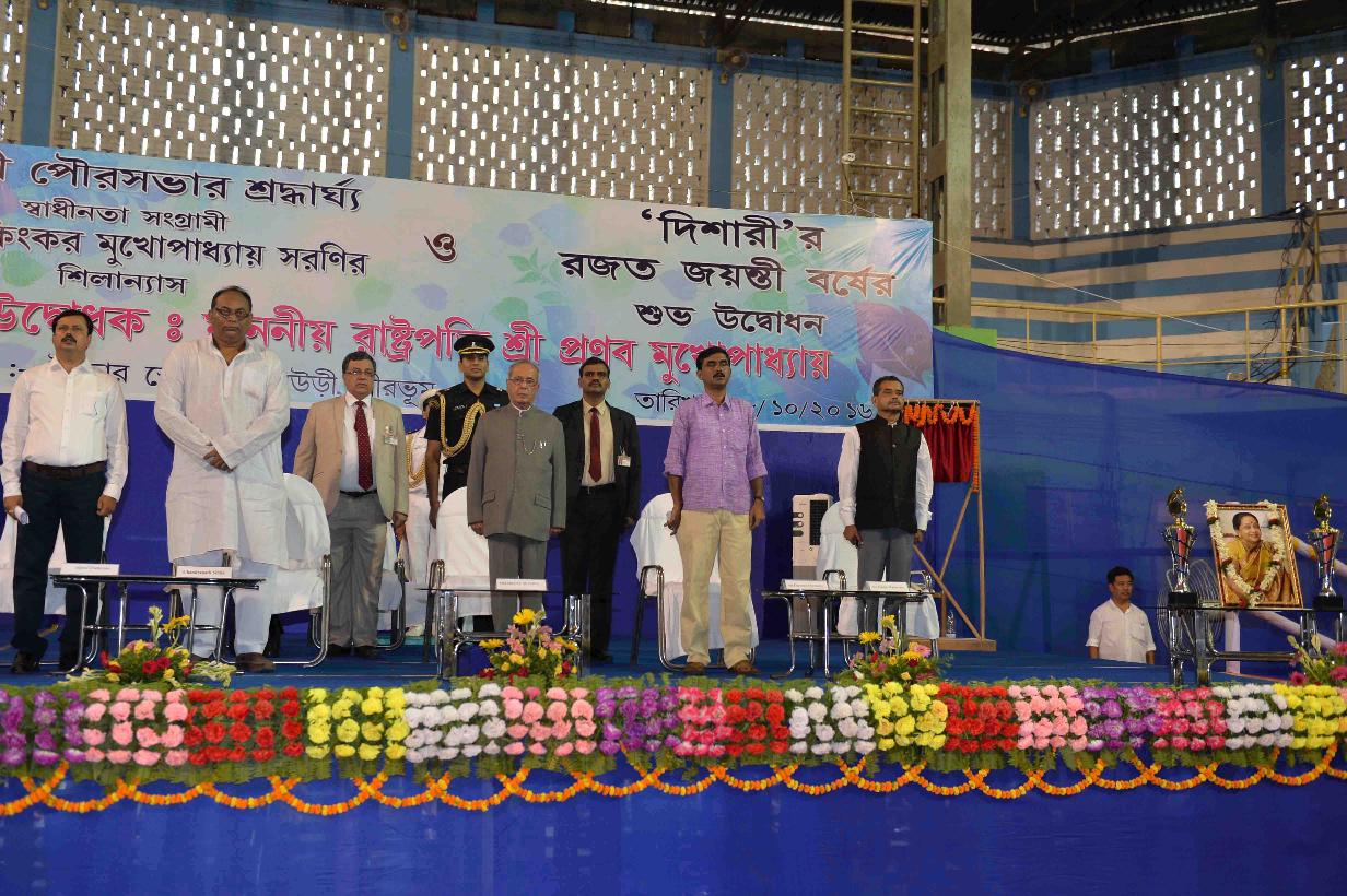 | Caption: | The President of India, Shri Pranab Mukherjee inaugurating the Kamoda Kinkar Mukhopadhyay Sarani (a street named after his father, a renowned freedom fighter) and the Silver Jubilee Celebrations of Dishari Club, at Suri, District Birbhum in West Bengal on October 08, 2016. |