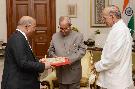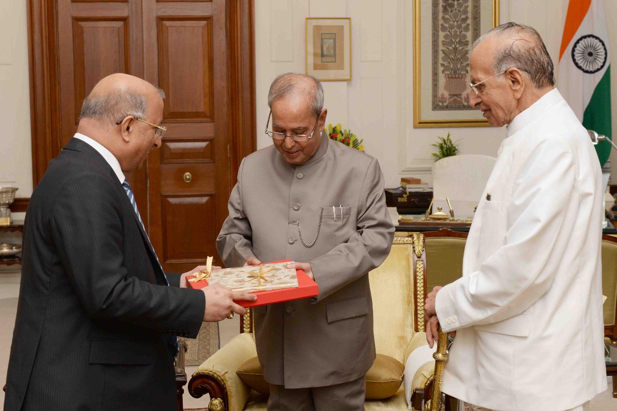 | Caption: | The President of India, Shri Pranab Mukherjee meeting with Shri Bansi Lal Mehta, Chairman Freedom Fighters Relief & Memorial Committee, Govt. of NCT of Delhi alongwith his son Shri Surinder Mehta, at Rashtrapati Bhavan on October 14, 2016. |